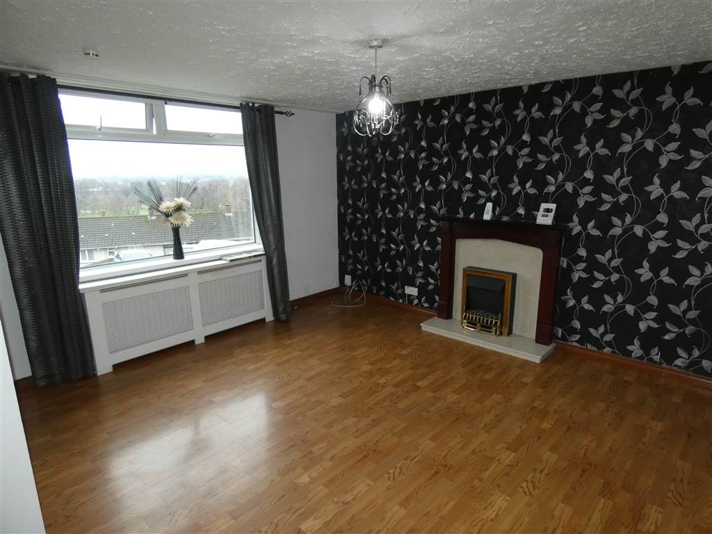 Feature mock fireplace with matching hearth and carved timber surround, electric fire inset, laminate timber effect flooring, stunning views towards Stormont.