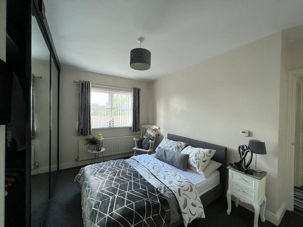 Having built in shelving and drawers and wardrobes with sliding mirrored doors.