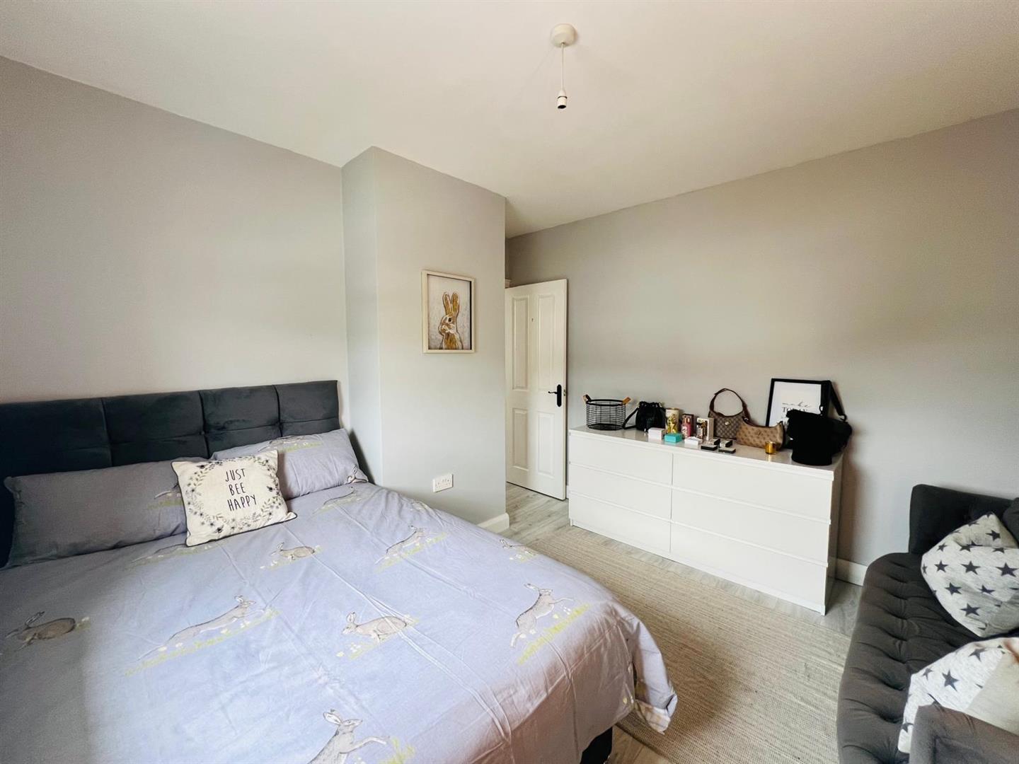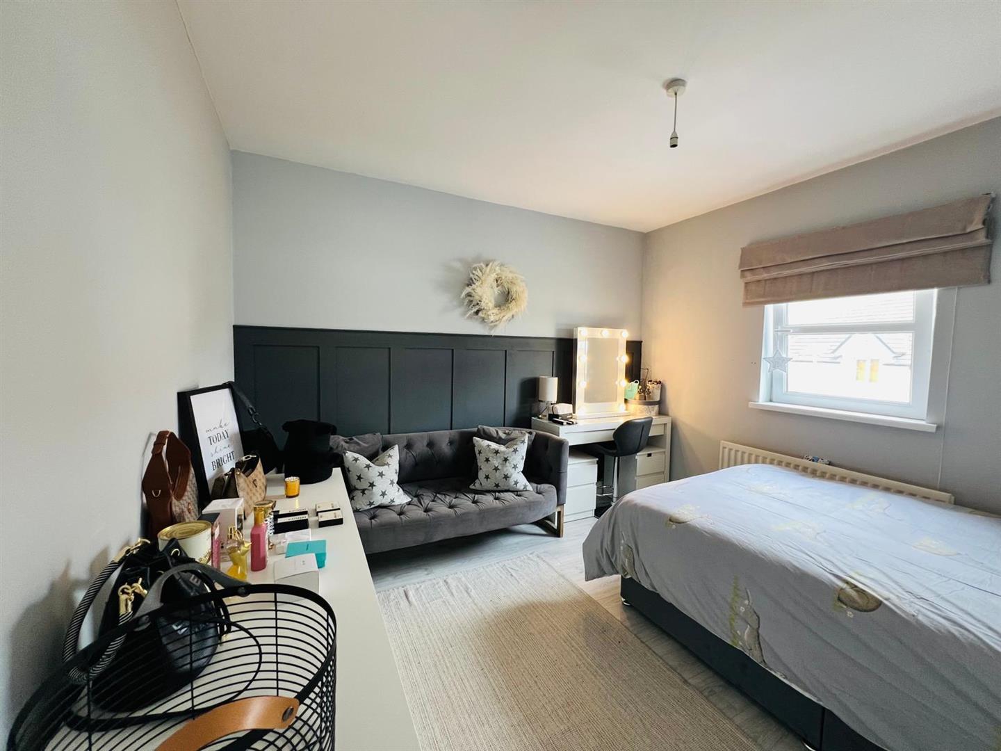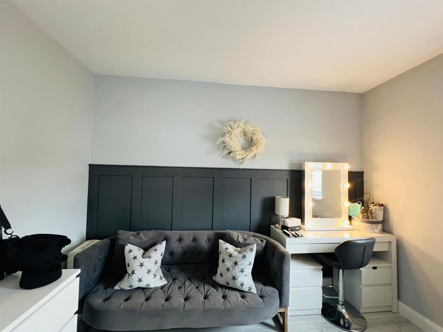 Having feature panelled wall, laminated wooden floor.
