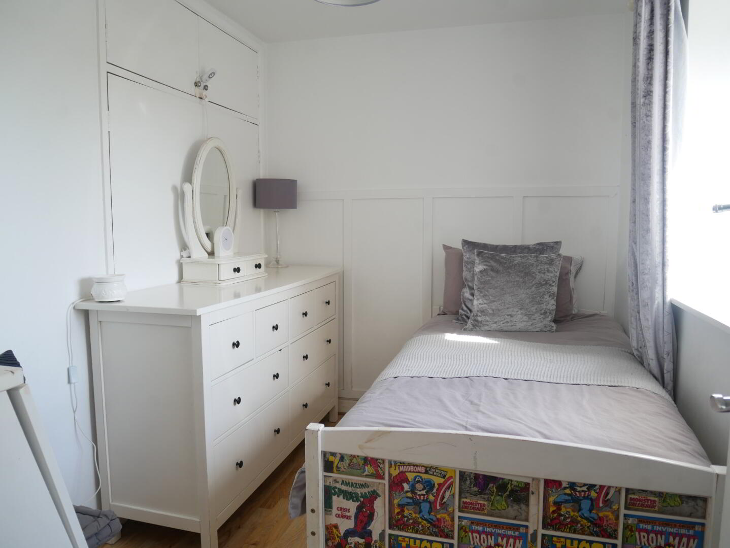 Bedroom 3: 10'1" x 6'9" wood laminate floor, built in wardrobe.