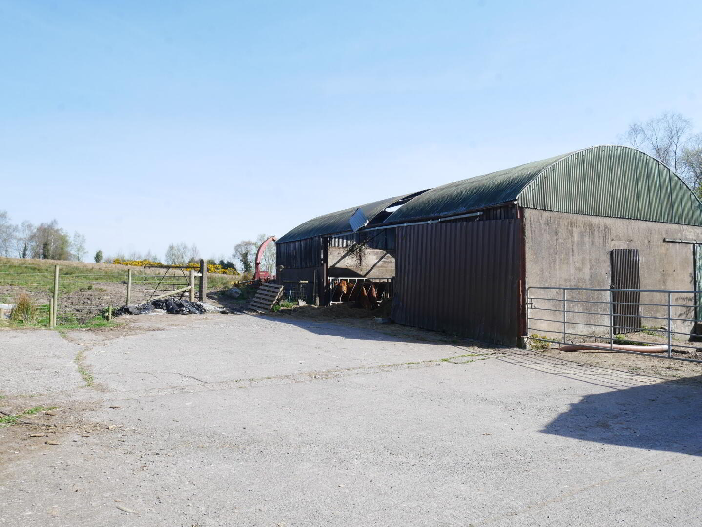 To the rear is a good concrete yard bordered on both sides by a useful range of outhousing. To one side sits a part slatted cattle shed, covered silo pit and machinery shed.