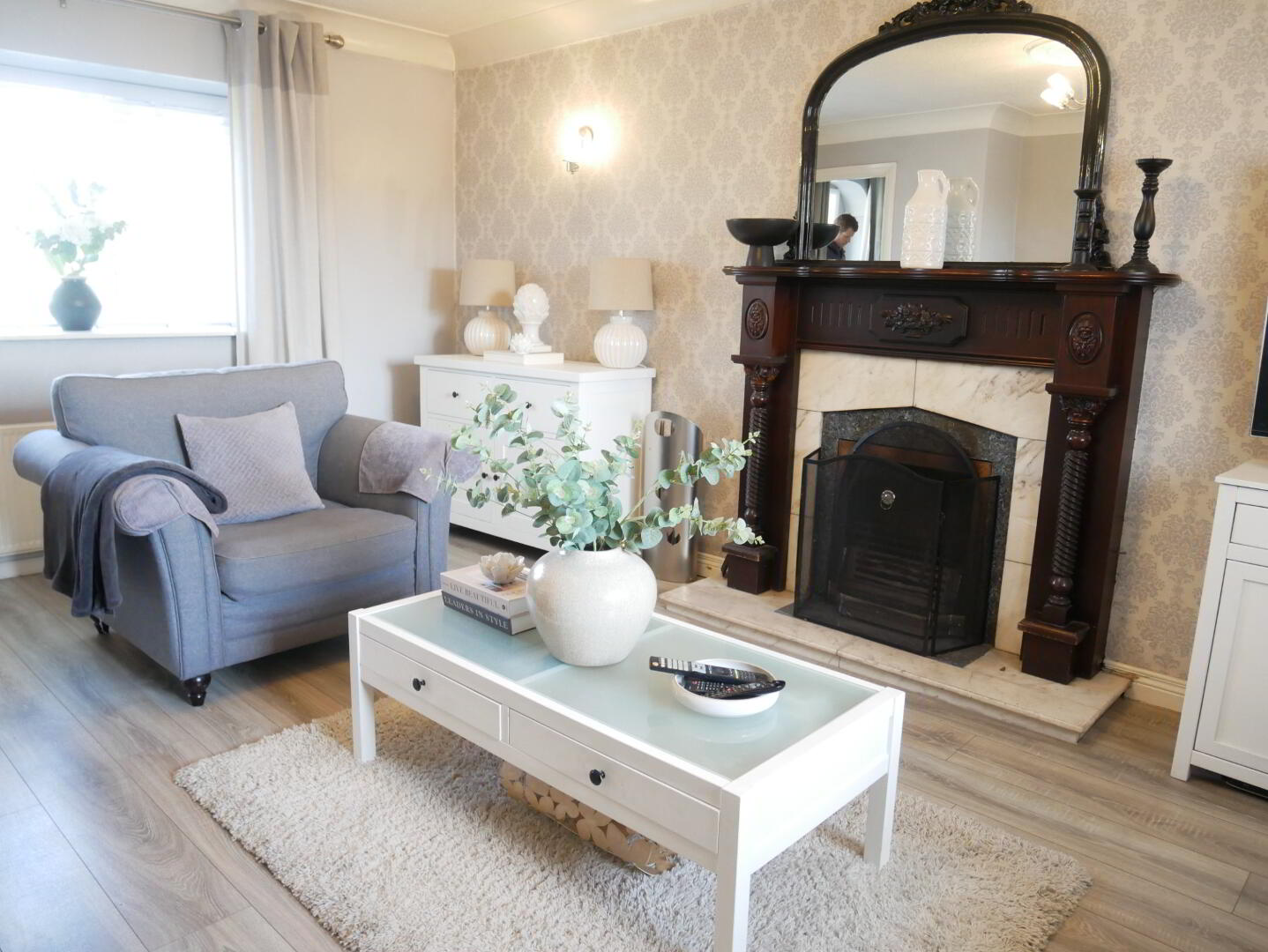 Entrance hall with wood laminate flooring.