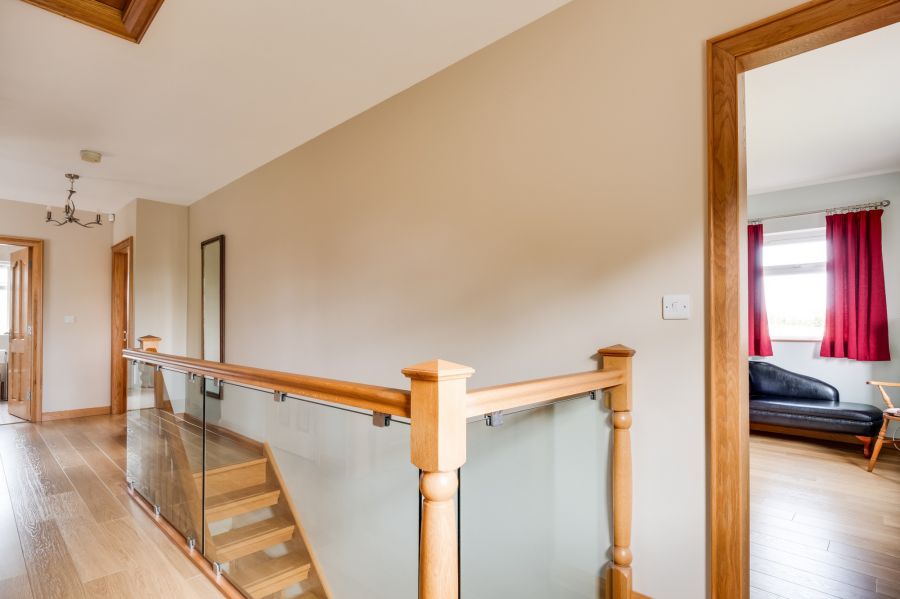 Landing area: 24’10 x 7’3 with hotpress, laminated floor, glass