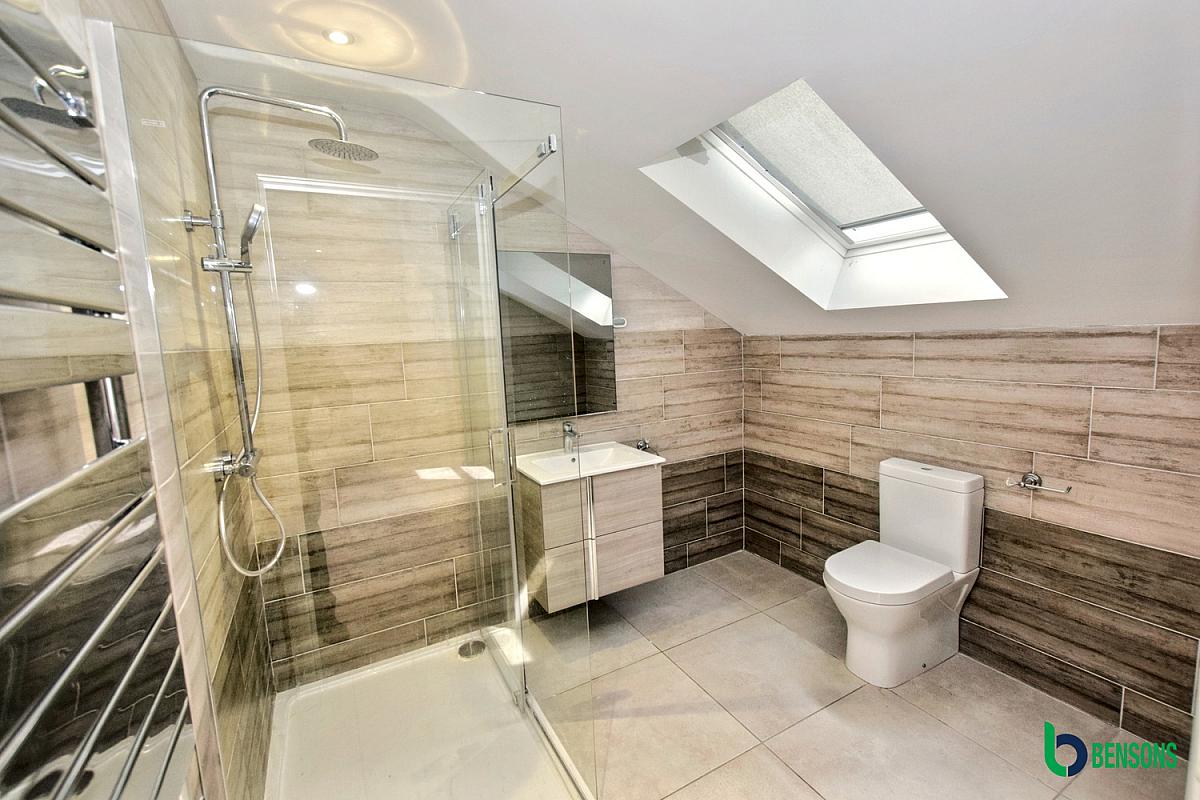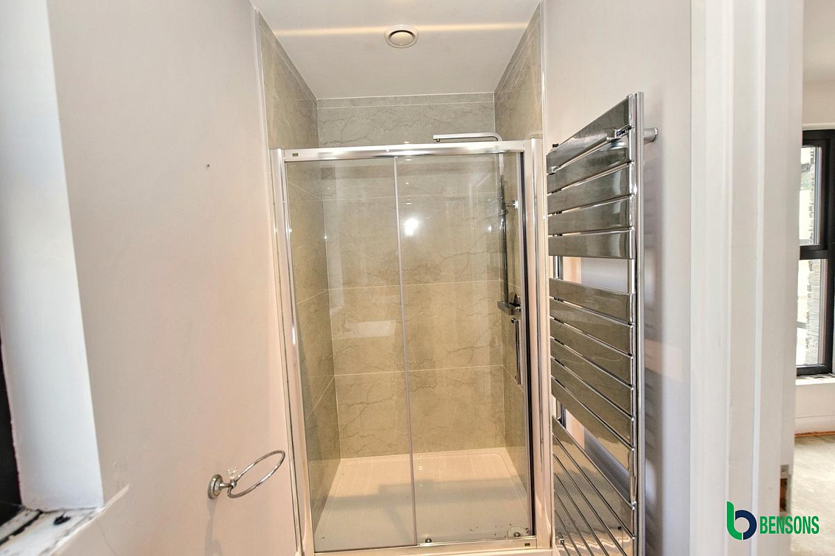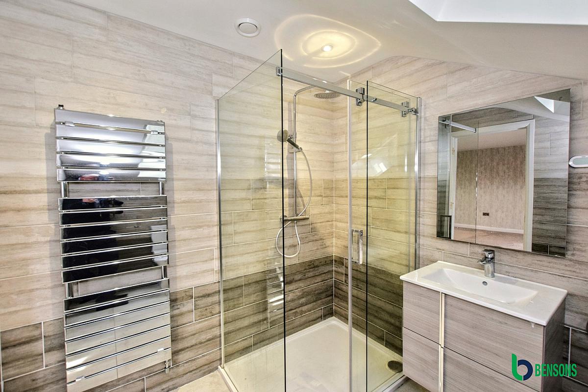 En-suite comprising walk in shower cubicle.