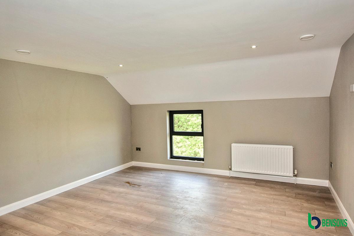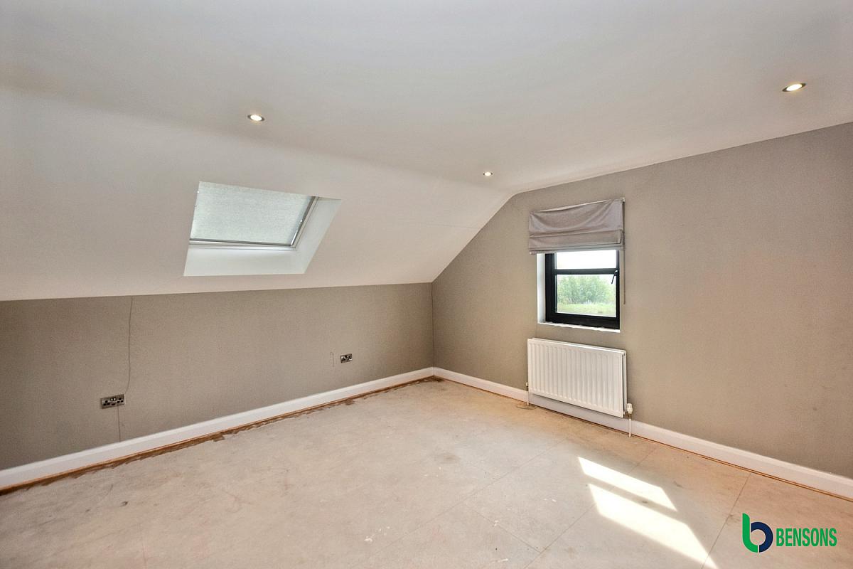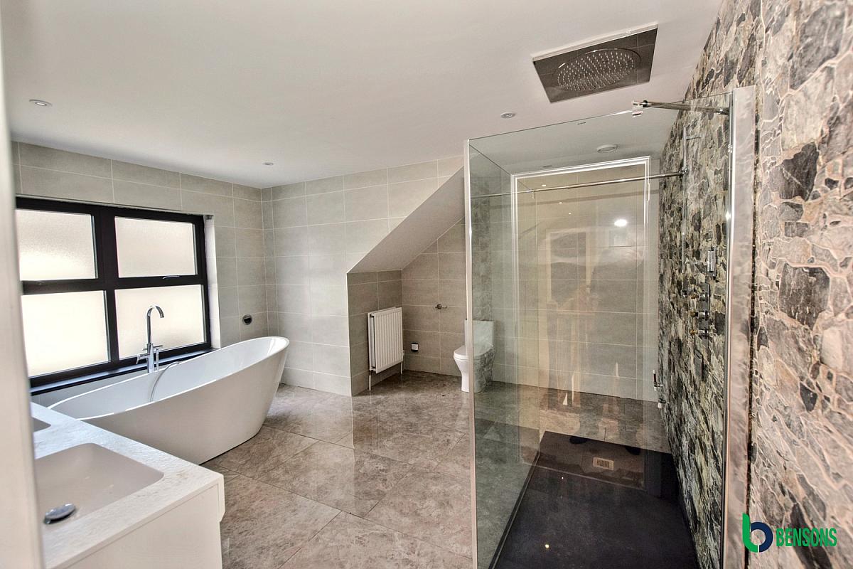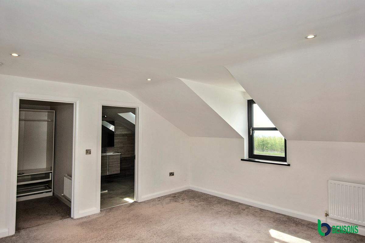 Comprising walk in dressing room. En-suite with walk in tiled shower cubicle, wash hand basin, wc, tiled walls and floor.