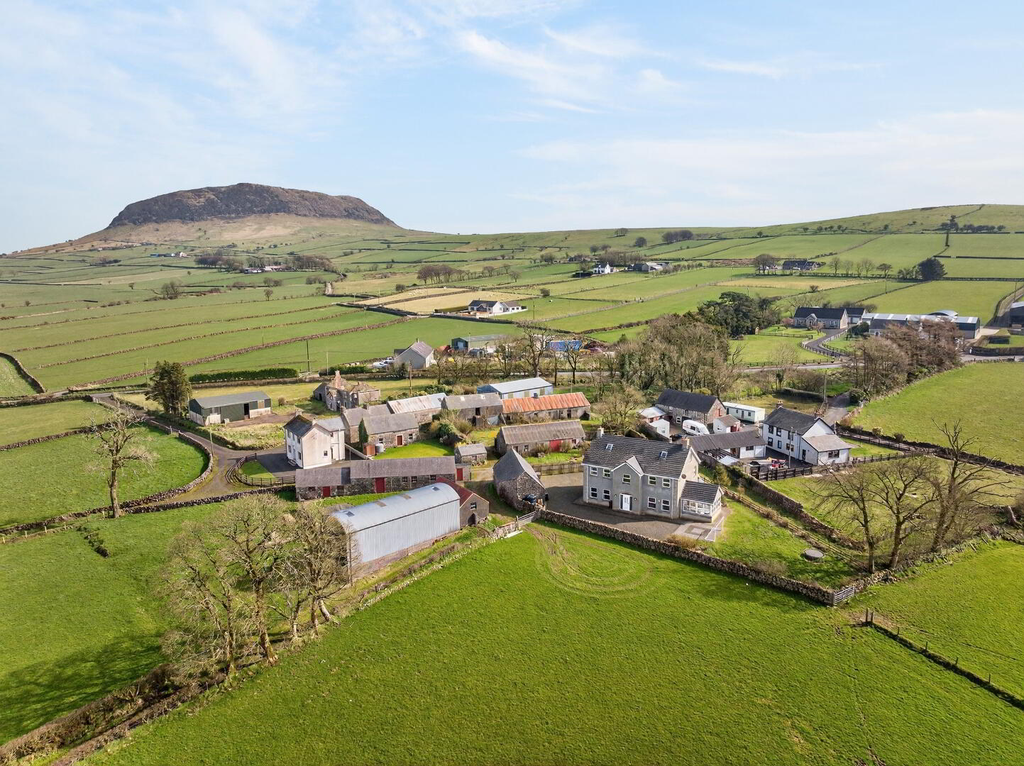 This detached 6-bedroom country home offers a spacious level of accommodation arranged over three floors and benefits from an elevated setting enjoying stunning views of the surrounding countryside with the backdrop of Slemish.