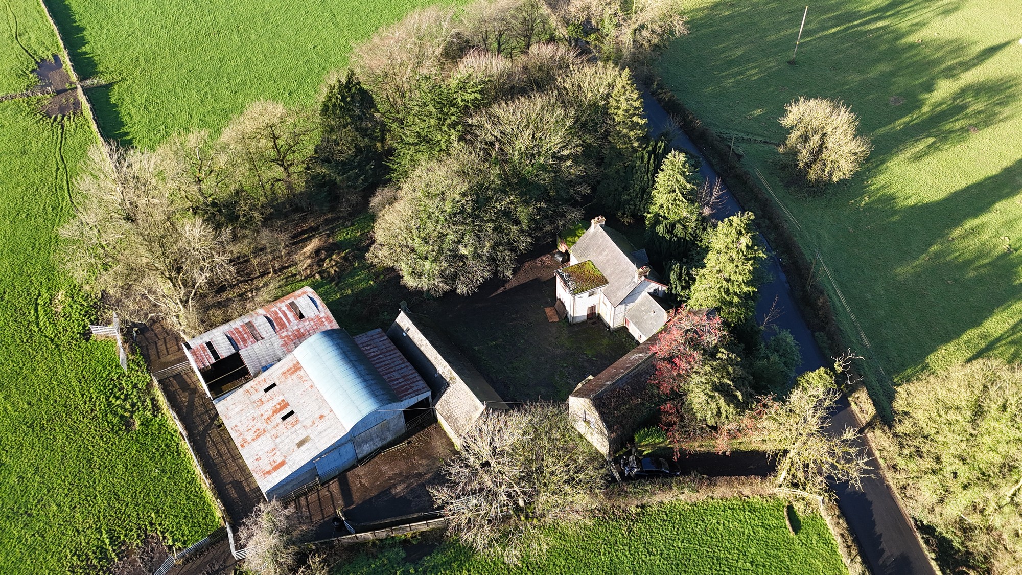 A substantial detached period residence now in a state of disrepair and requiring renovation or would be suitable for a replacement dwelling subject to planning. Externally, there are a range of traditional stone built outbuildings which may have some potential for conversion together with livestock accommodation and general purpose stores. The lands extend to c.49.11 acres with c.25.81 acres surrounding the residence and yard and the remaining c.23.3 acres together with a derelict dwelling and former yard accessed off Creevamoy Road. The holding is situated in a prime location in the fertile Braid Valley approx. 2 miles from the award winning village of Broughshane.