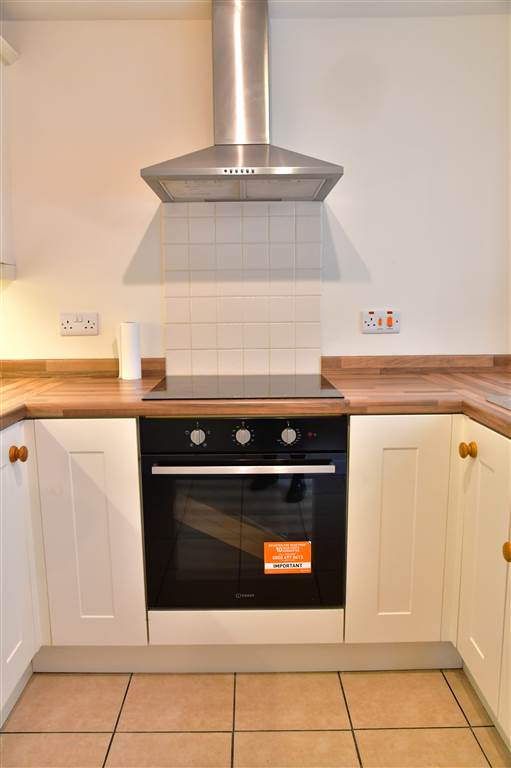Modern kitchen with cream units and new integrated cooker
