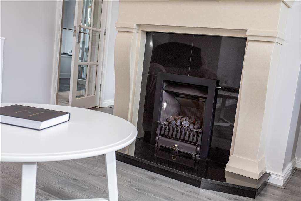 With fireplace to granite hearth, surround and mantle. Laminated wooden flooring. Dining area off lounge. Access through to kitchen.