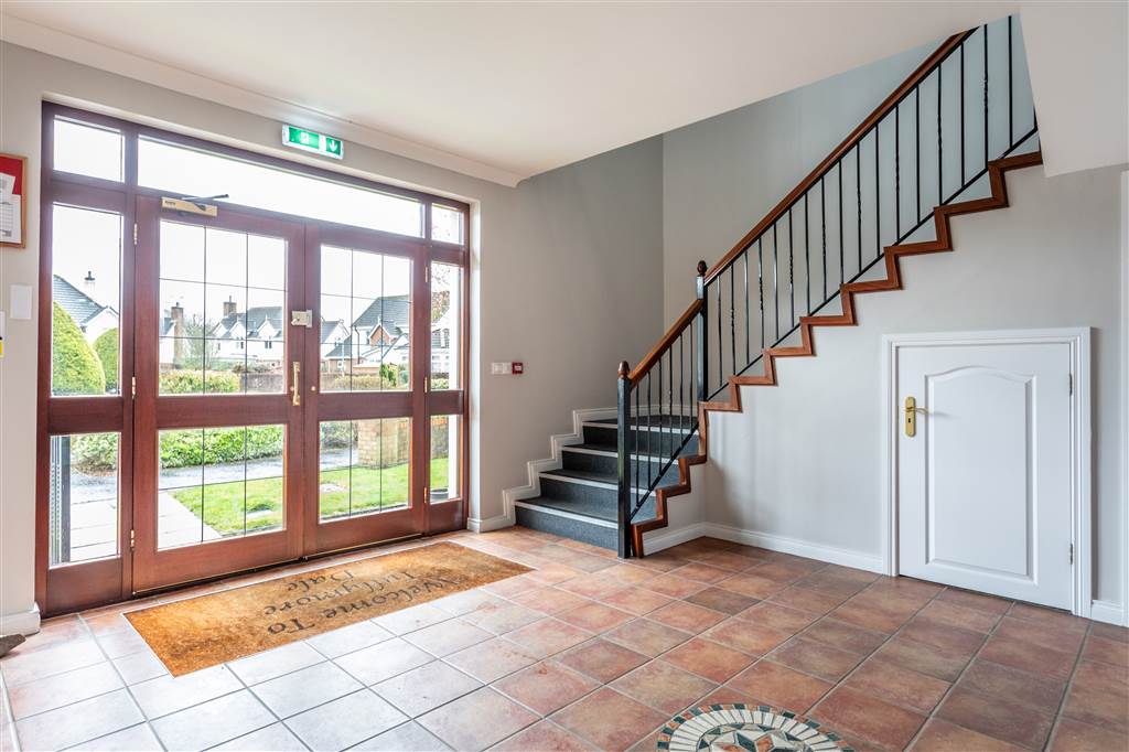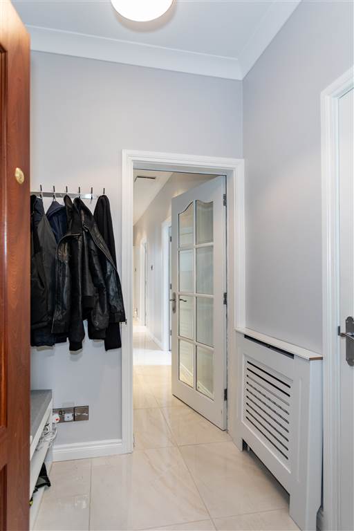 With Hardwood double doors with glazed panes and glazed side panes. Communal entrance hall. Staircase to first floor. Tiled flooring.