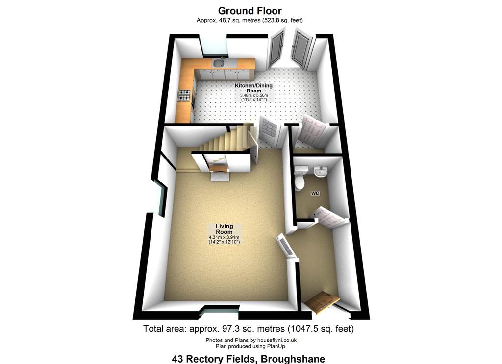 Total area: approx. 97.3 sq. metres (1047.5 sq. feet)