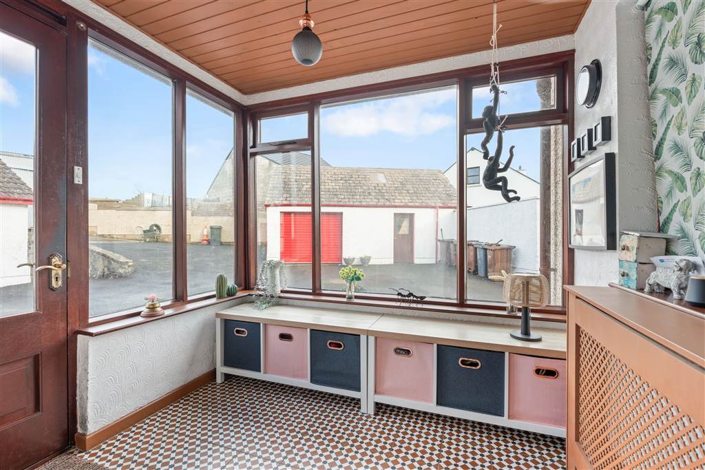 With PVC front door with glazed panes and glazed surround. Glazed door to entrance hall.