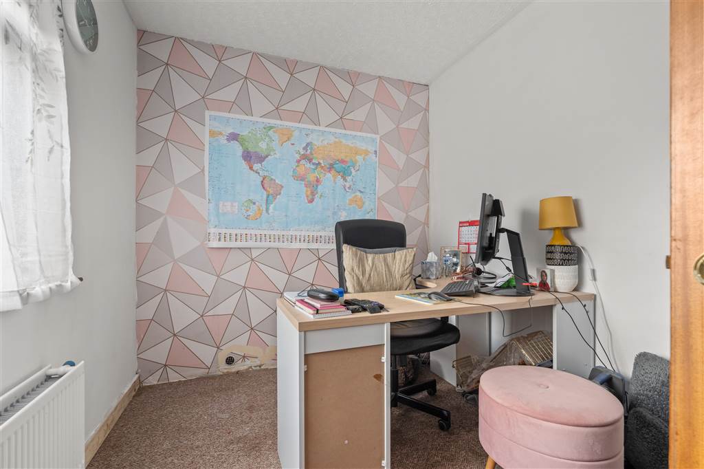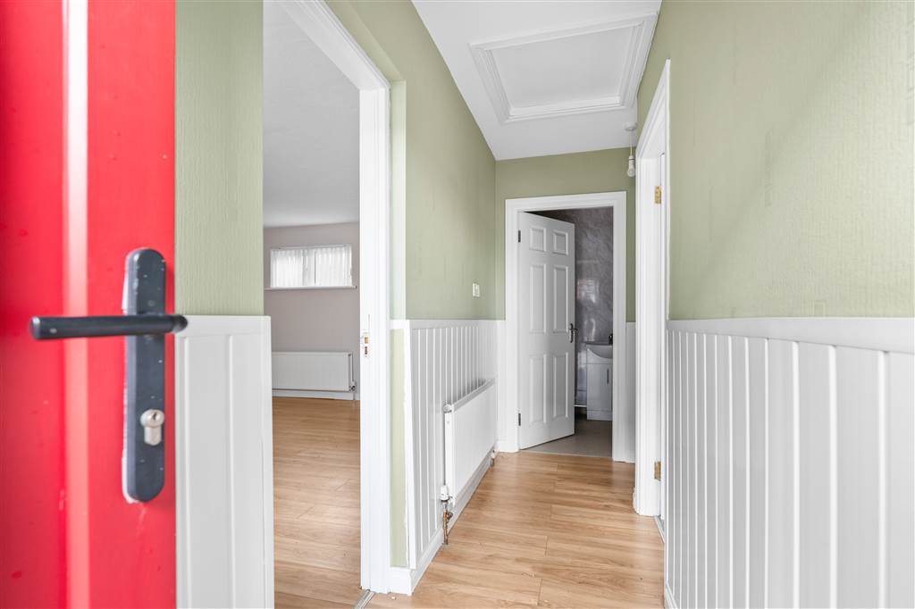 With PVC front door. Wooden panelling to walls. Laminated wooden flooring. Access to loft.