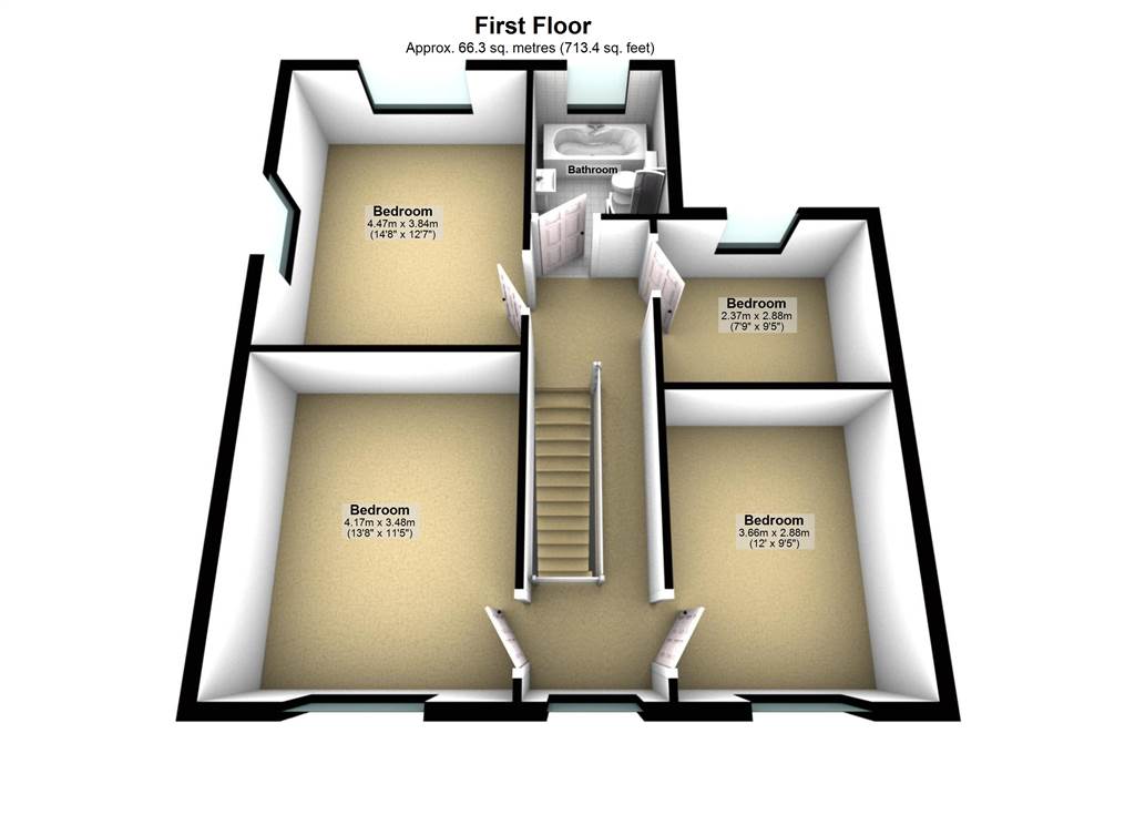 BEDROOM (3): 14' 8" X 12' 7" (4.47m X 3.84m)