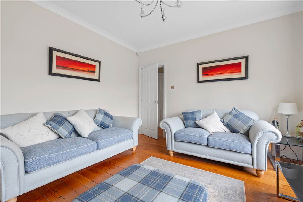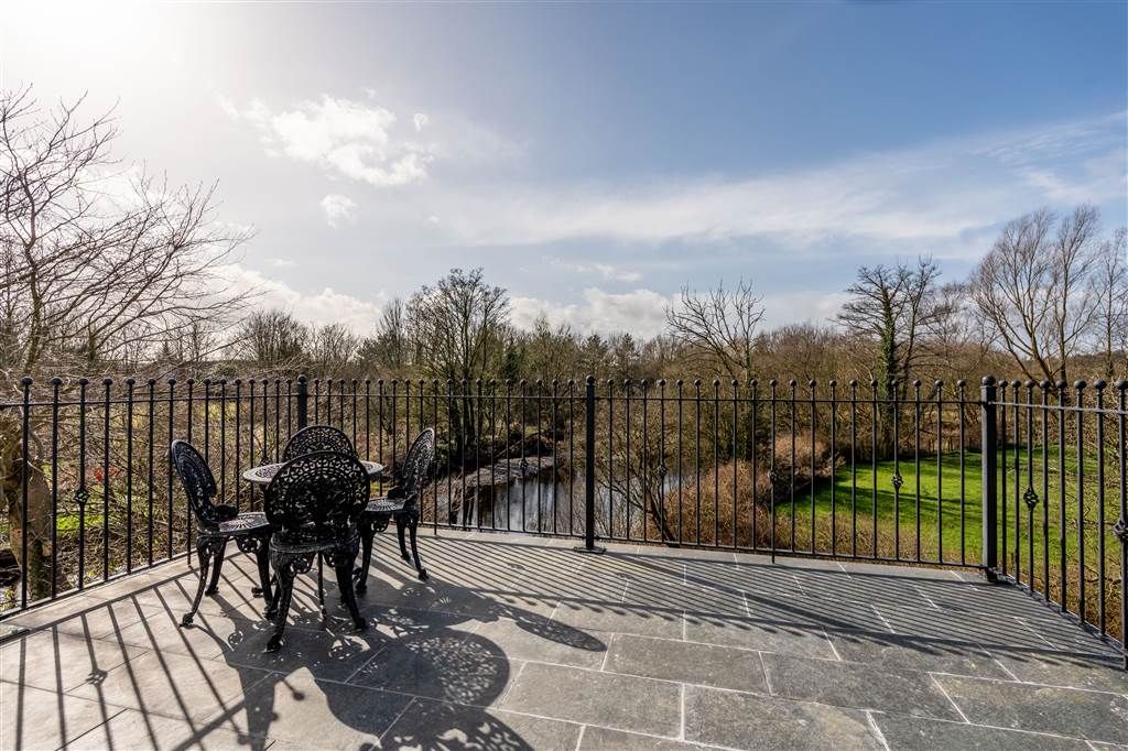 With laminated wooden flooring. PVC double glazed doors to terrace overlooking the Braid River.