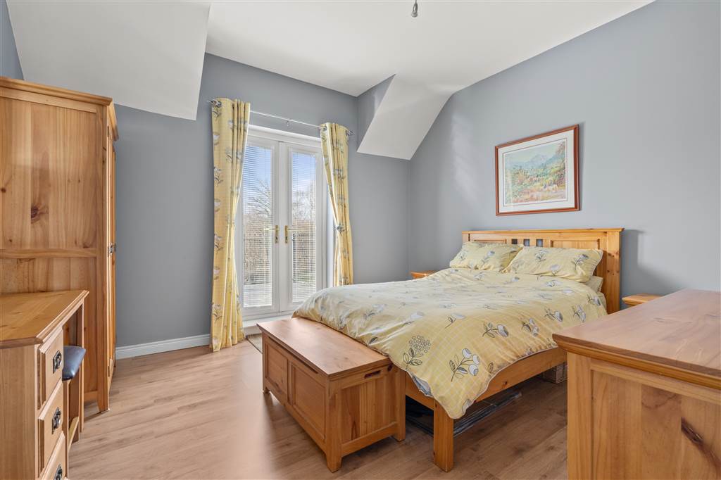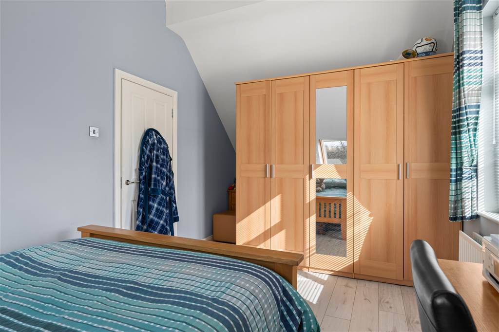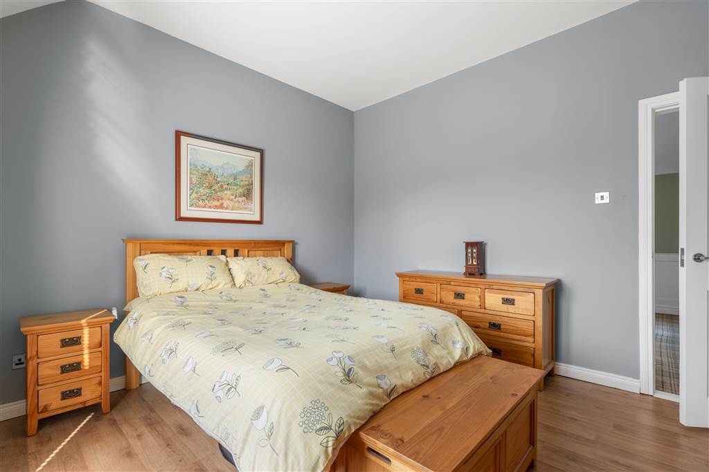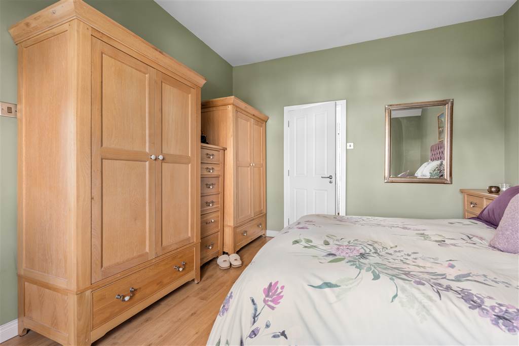 With hot-press with shelved storage. Wooden panelling to walls. Coving to ceiling. Spot lighting to ceiling.