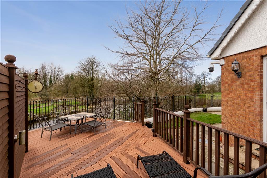 Decking area at rear overlooking the Braid River