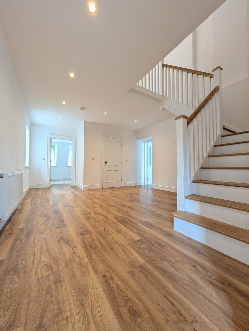 First Floor - Split level staircase with brilliant white risers and contrasting exposed oak tread, leading off to 3 x bedroom, bathroom, walk-in hot-press