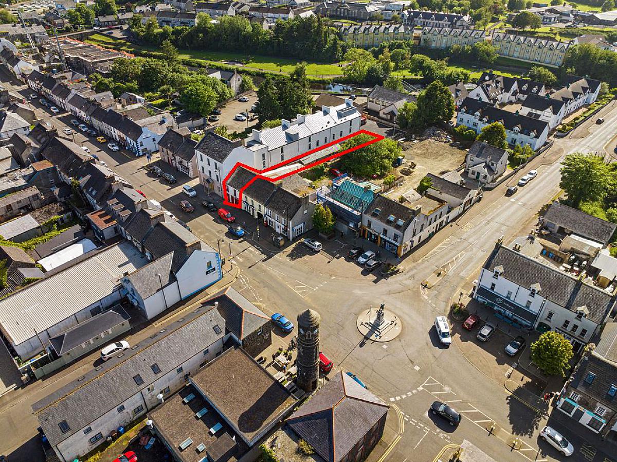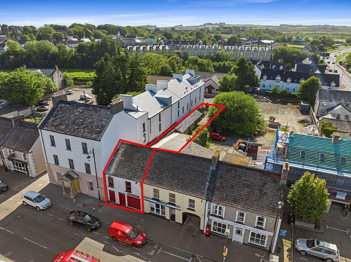 Extremely large and deceptive prime town centre retail unit extending to approx. 1380 sq. ft on the ground floor with extensive additional lands to rear with storage units bordering road to rear. This property has full retail use passed and is suitable for any number of uses including possible redevelopment (subject to consents). Access and viewings available through agent.