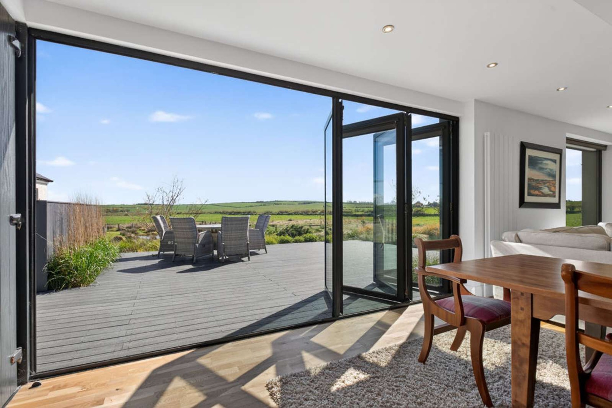 A large composite decked area to the rear provides a super outlook over the landscaped gardens and countryside to the rear - secluded and ideal for a BBQ on those long summer evenings!