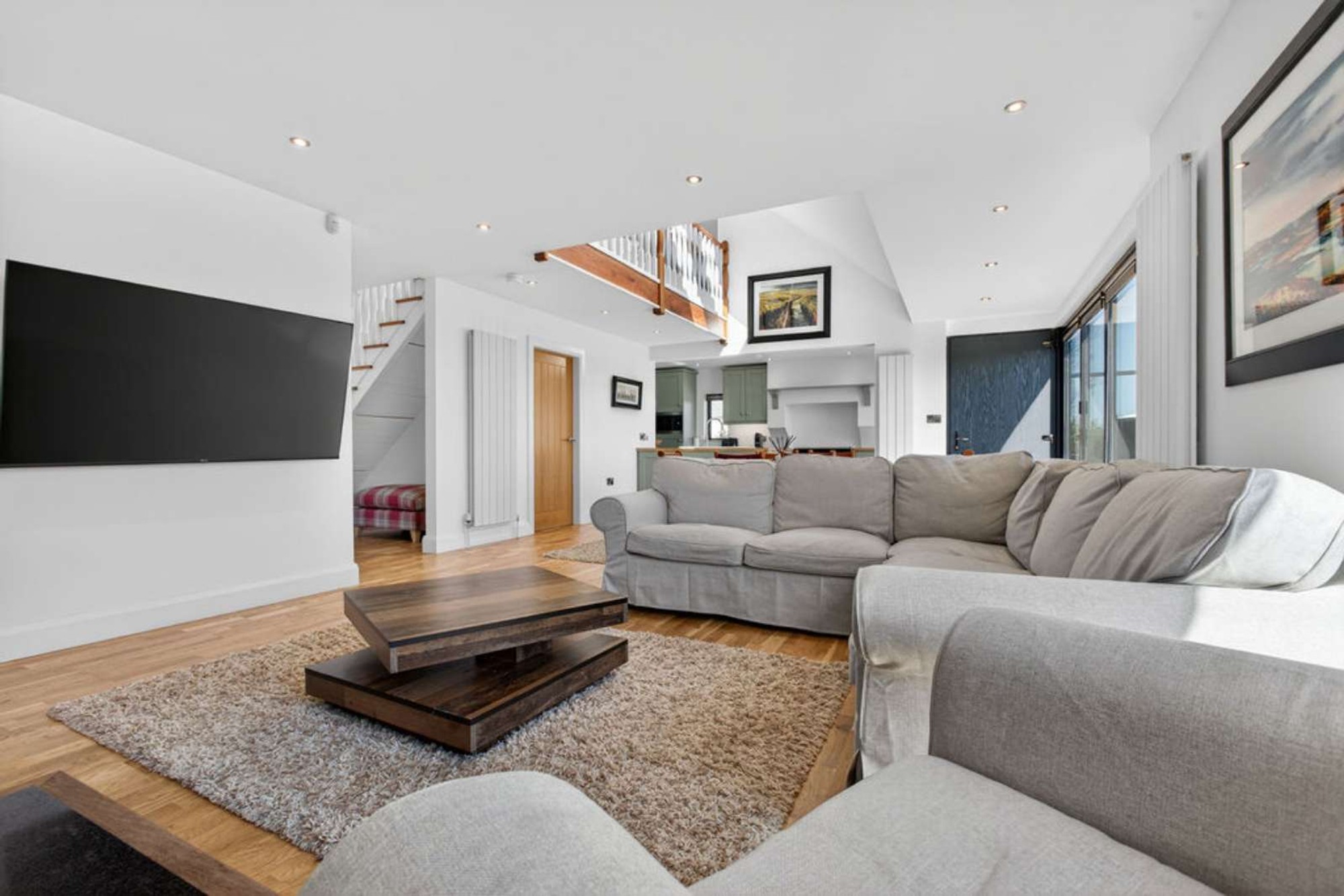 Open plan to the ground floor living/dining room; large velux windows providing super views to the rear and open plan to a reading/play area.