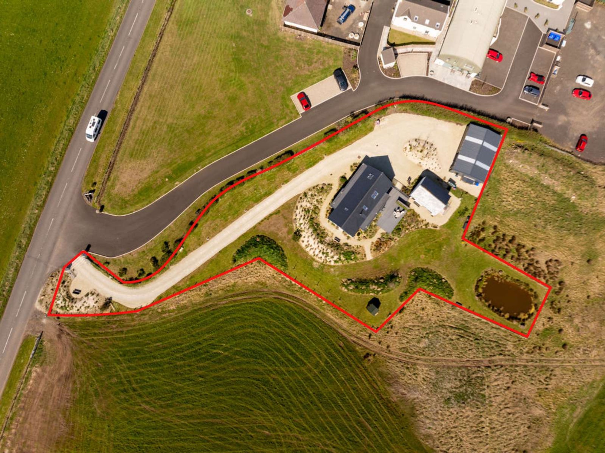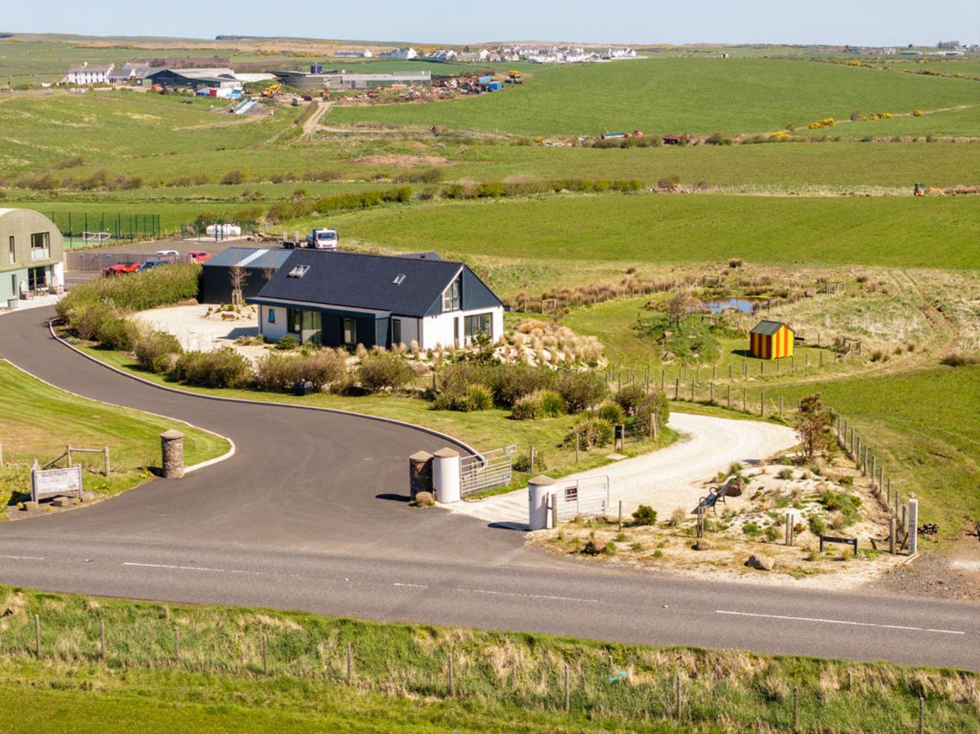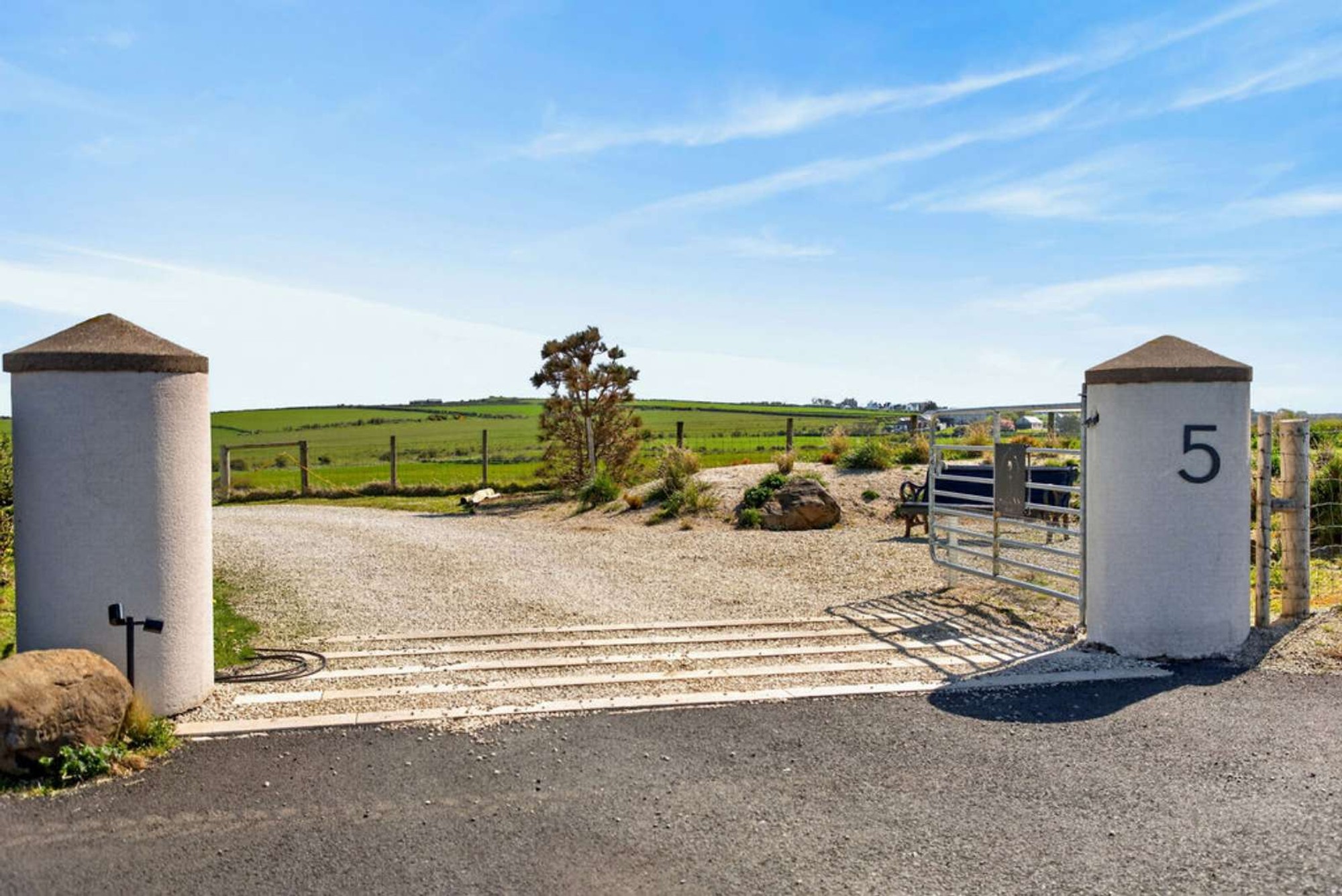 A traditional style stoned sweeping driveway approaches the dwelling with a large parking/turning area to the side.