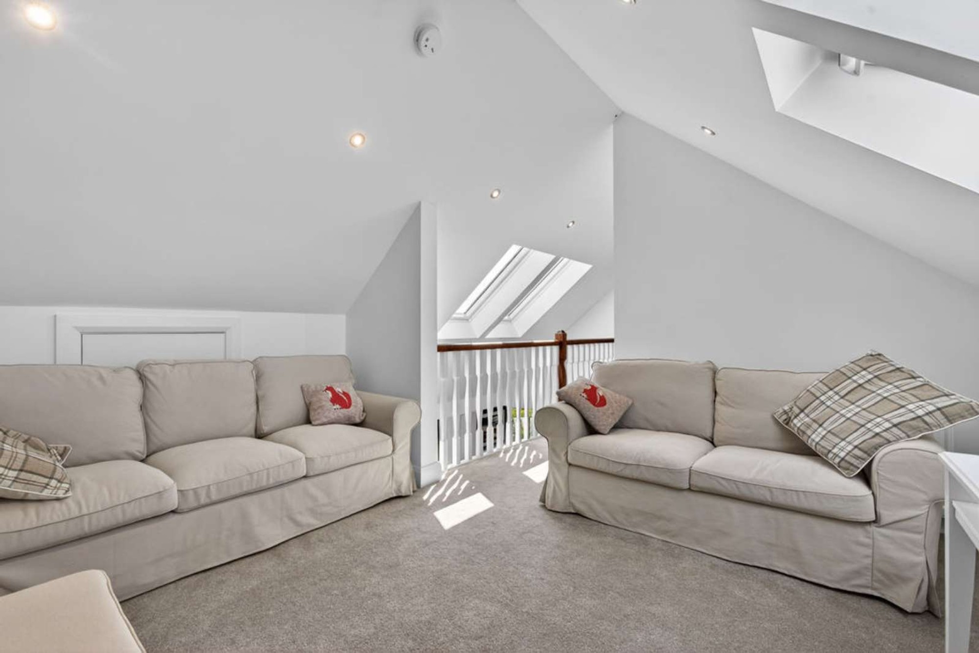 With a vaulted ceiling, open plan to the minstrel gallery area, recessed ceiling spotlights and velux windows providing superb views to the front - this area has been left ready for conversion to a velux type balcony area - if desired.