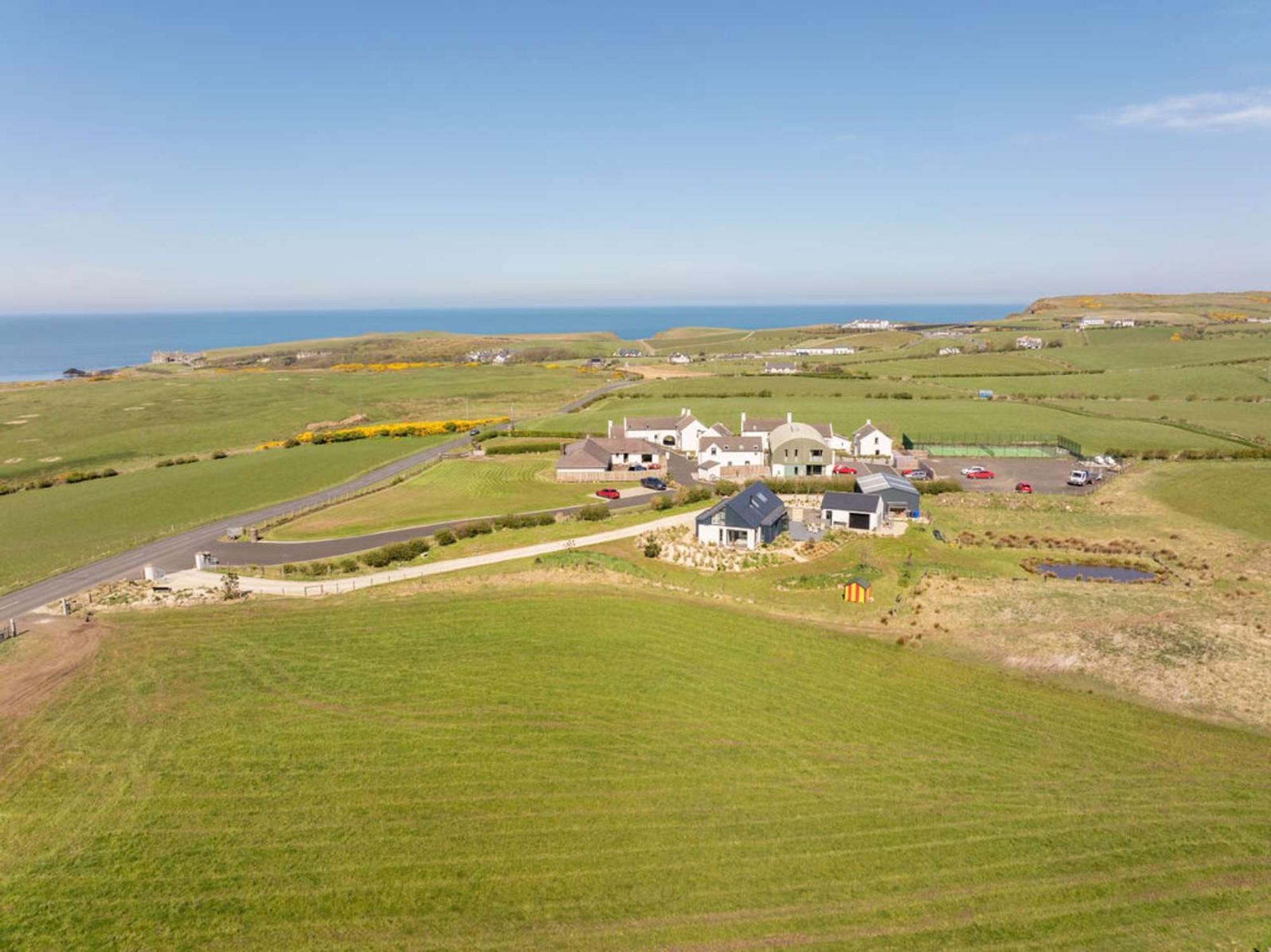 Feature glazed entrance providing outstanding views over the ocean towards Donegal to the front, attractive wood flooring, cloaks area, recessed ceiling spotlights, solid wood and balustrade staircase to the upper floor and leading into the Kitchen/Dining/Living room.