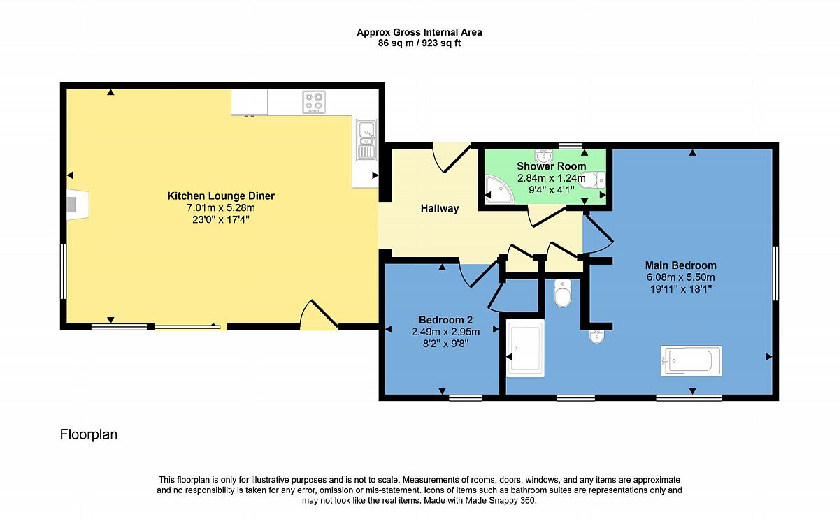 Open Plan Lounge/Dining/Kitchen Area: (3.61m X 7.32m)