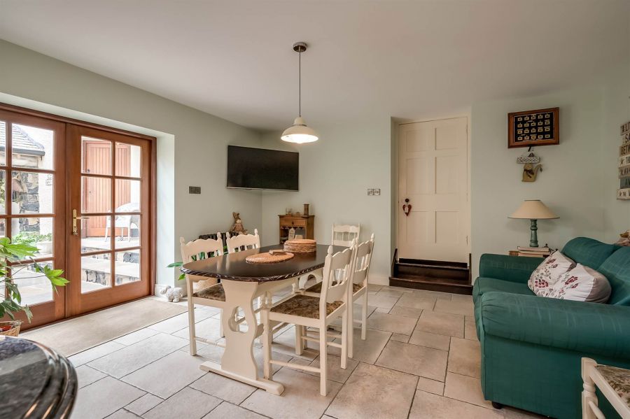 In addition this well presented and meticulously maintained property benefits from wooden framed double glazed windows, dual oil fired central heating and wood pellet central heating system, a three level garage and storage in stone, a private rear courtyard with an amazing covered deck sitting/barbecue area.