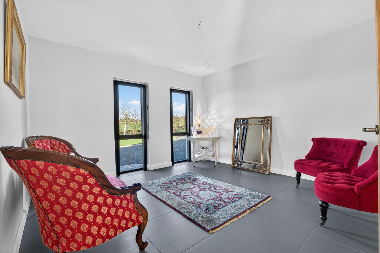 The balance of the property has been thoughtfully designed and is flexible in its use and includes a sunroom, living room, an inner vestibule with a bedroom and separate shower room, a study/living room, Sauna/gym room with ensuite bathroom, an excellent ensuite and fitted walk in wardrobe to the master bedroom with two further fitted walk in wardrobes to bedrooms 2 & 3. In addition, there is good storage provision, a separate bathroom and utility room.