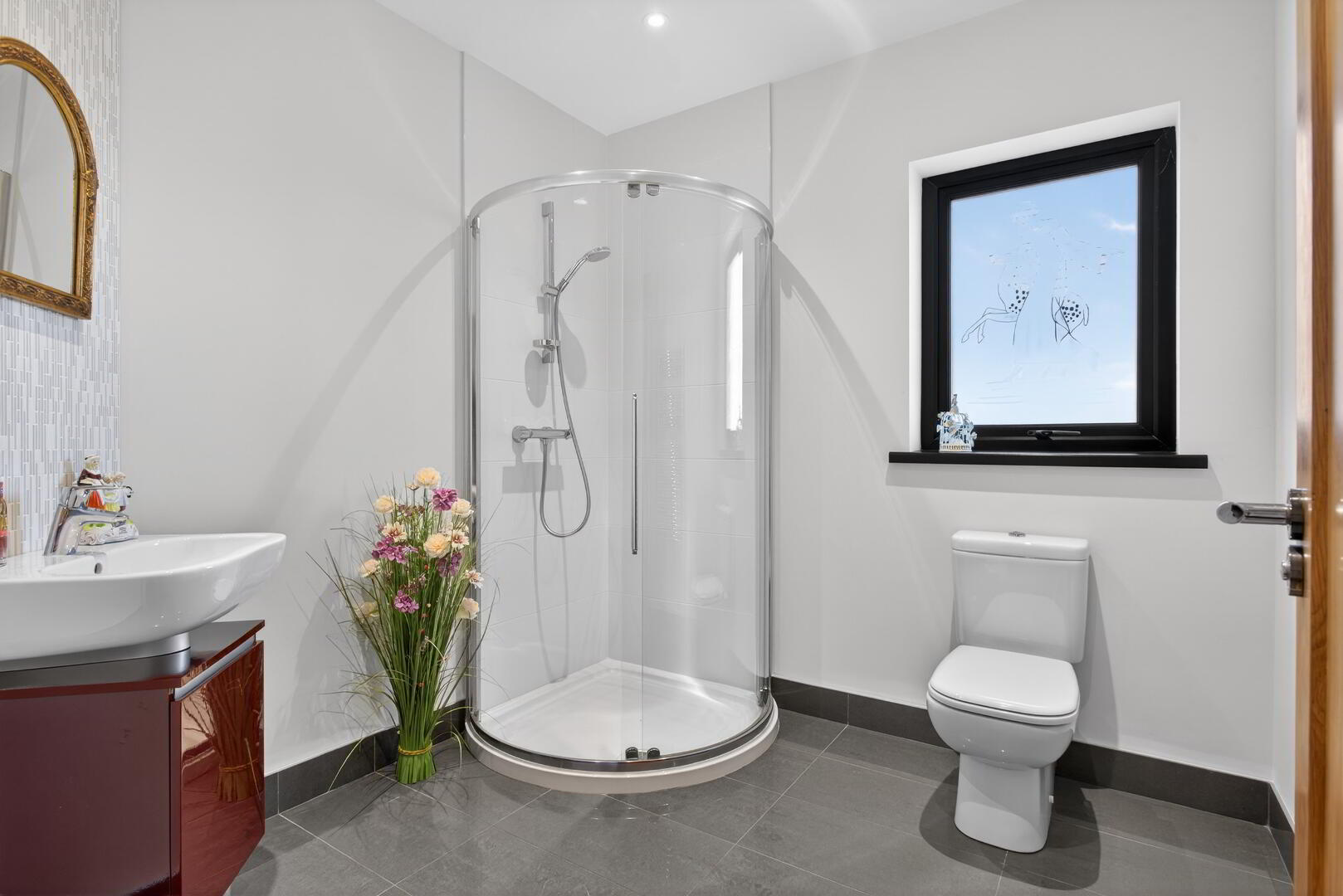 Ensuite and bathroom windows featuring frosted Kingfisher Art
