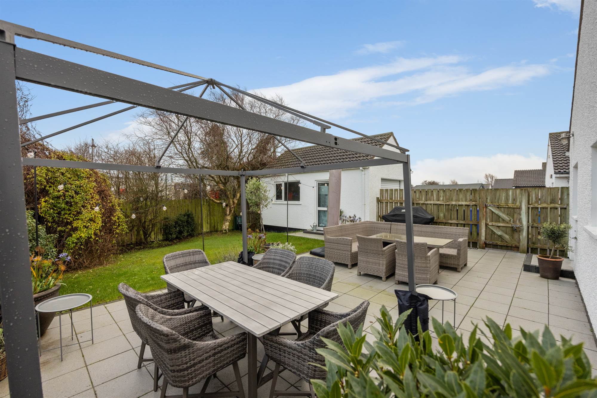 To the rear of the property there is a large paved area with space for a 6-8 seater dining table and chairs. Totally secure fencing to both sides which is great for kids/animals. Laurel hedge to side in slate flowerbed with attractive stone trim, oil fired central heating boiler, patio opens to lawn area with mature trees and planting. Large seating area to rear terrace, driveway to side with parking for 3-4 cars, small garden to front, outside tap and lights.