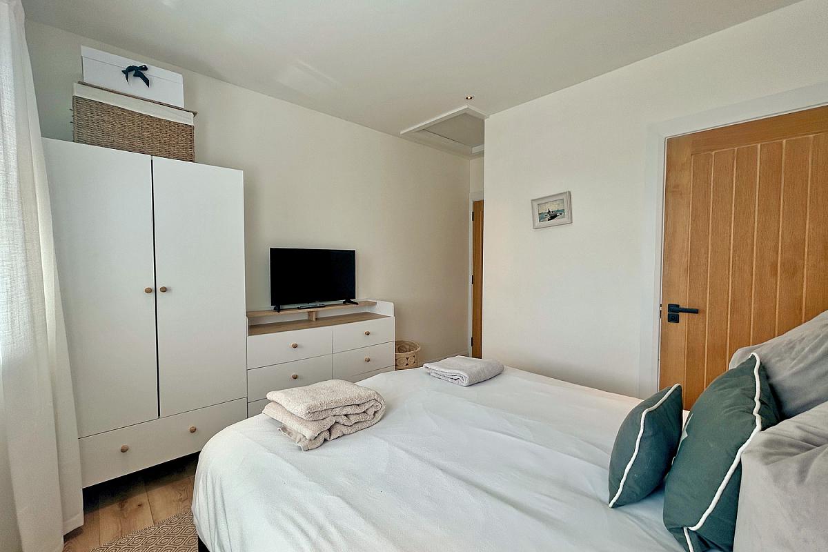 Double bedroom to the front; part wood panelled walls; laminate floor; recessed lighting; storage cupboard.