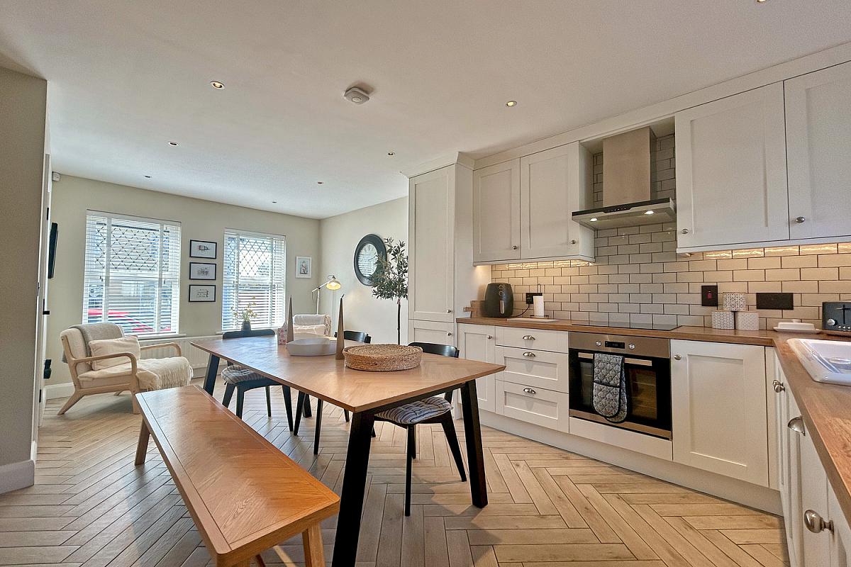 The accommodation comprises a bright and spacious living area, a contemporary fitted kitchen with quality finishes, and three well proportioned bedrooms. The master bedroom further benefits from a modern ensuite, while a sleek, updated family bathroom serves the remaining rooms.