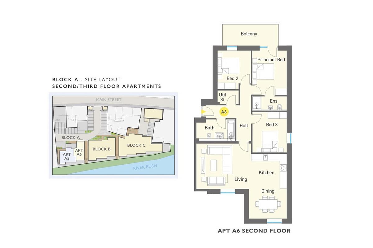 A6 RIVERSIDE - SECOND FLOOR - 3 BEDROOM - 1,033 SQ FT