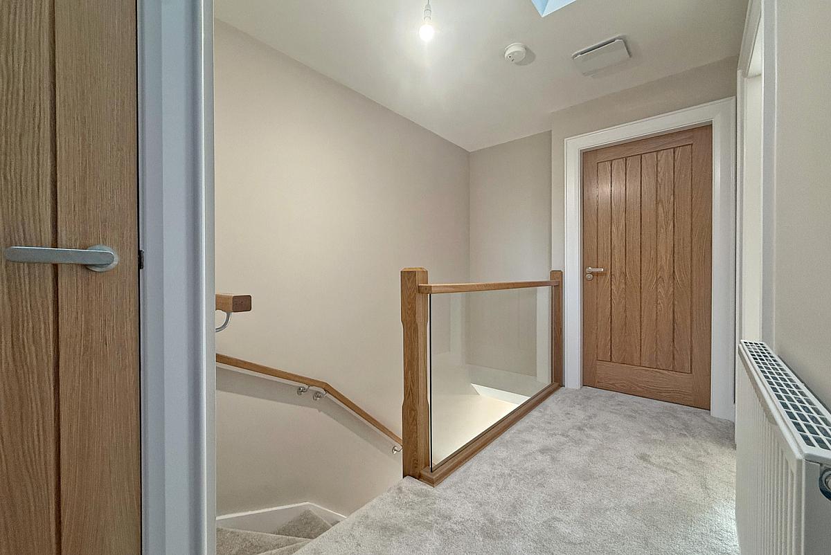 Upstairs are three well-proportioned bedrooms, including a principal bedroom with ensuite, along with a luxurious bathroom. Zoned underfloor heating to the ground floor and triple-glazed windows provide excellent comfort and efficiency.
