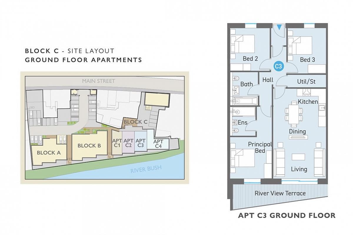 C3 RIVERSIDE - GROUND FLOOR - 3 BEDROOM - 960 SQ FT.