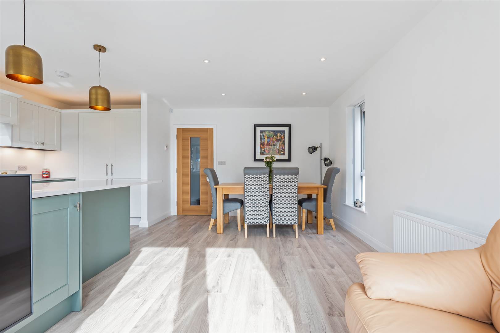 Part glazed oak door. Laminate flooring.