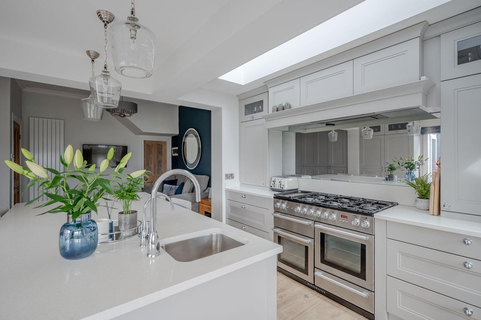 Stunning open plan kitchen, living and dining space with feature glazing and excellent storage