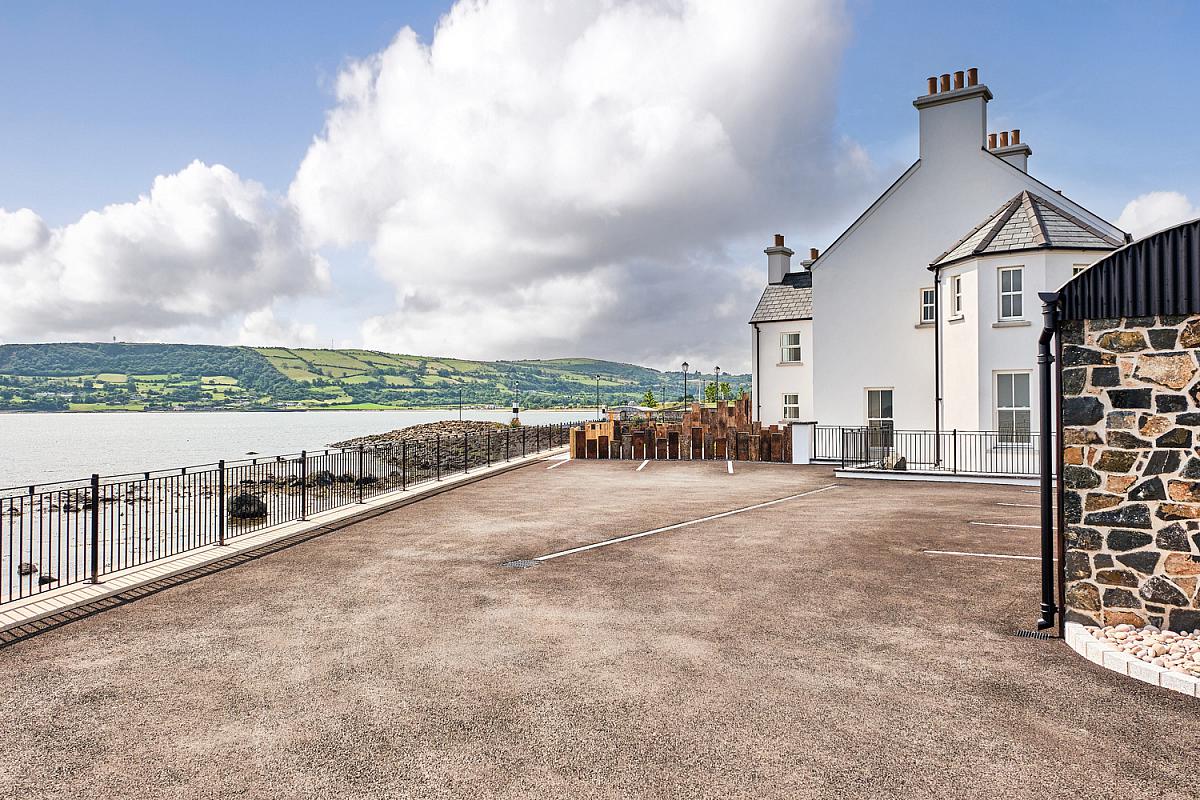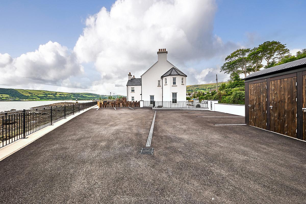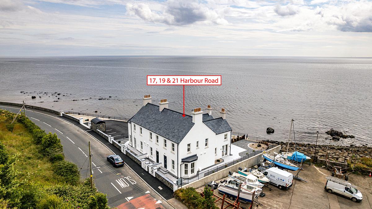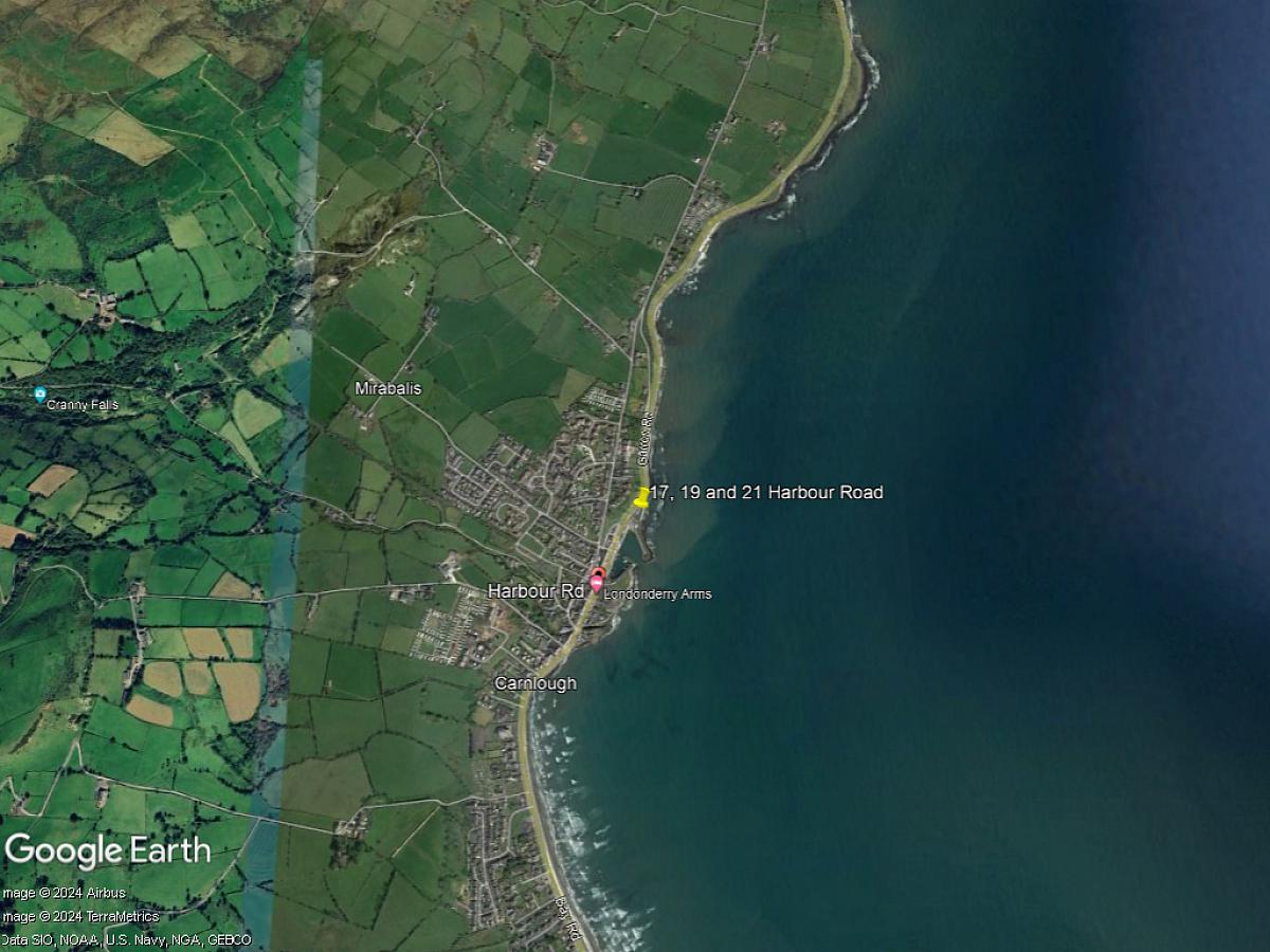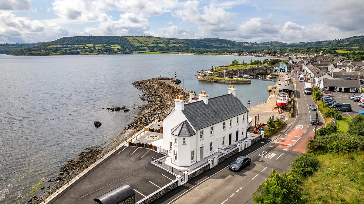 Travelling along the coast road from Glenariffe as you enter Carnlough these properties are the only ones on the seaward side just before the harbour entrance.