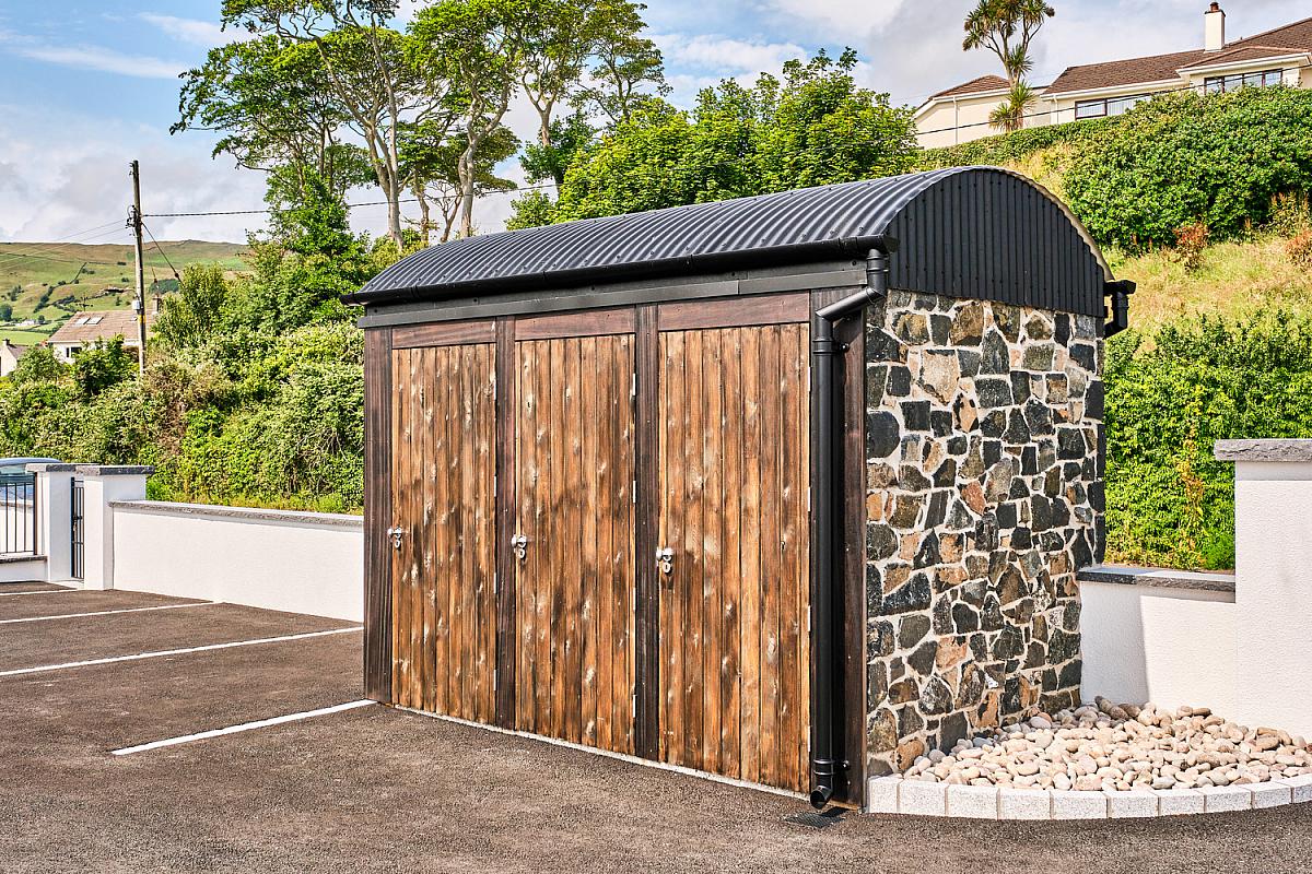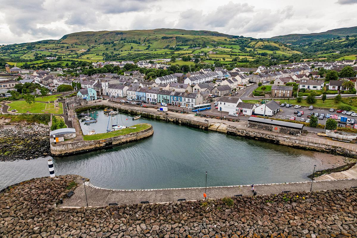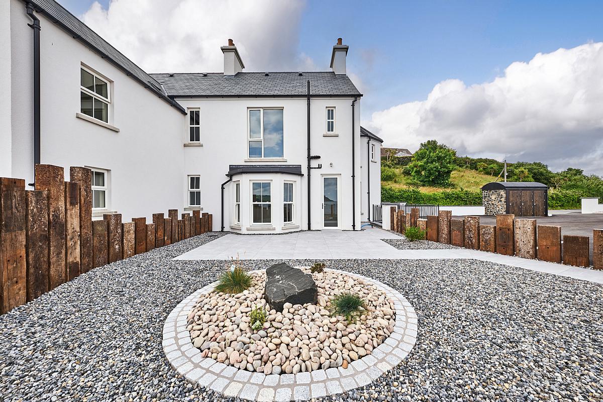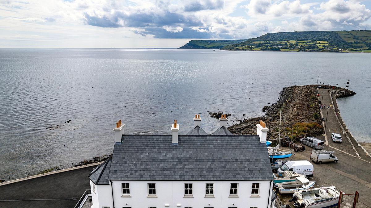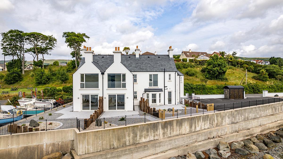 Travelling along the coast road from Glenariffe as you enter Carnlough these properties are the only ones on the seaward side just before the harbour entrance.