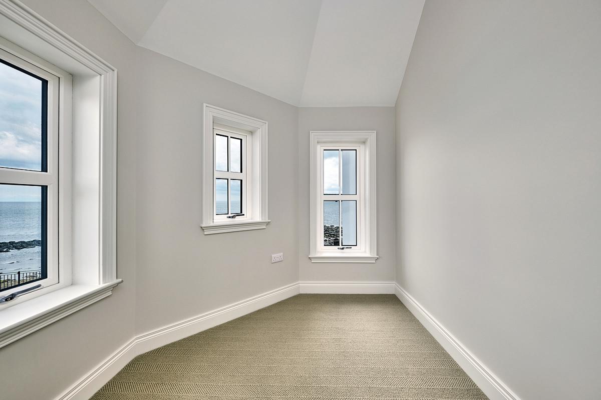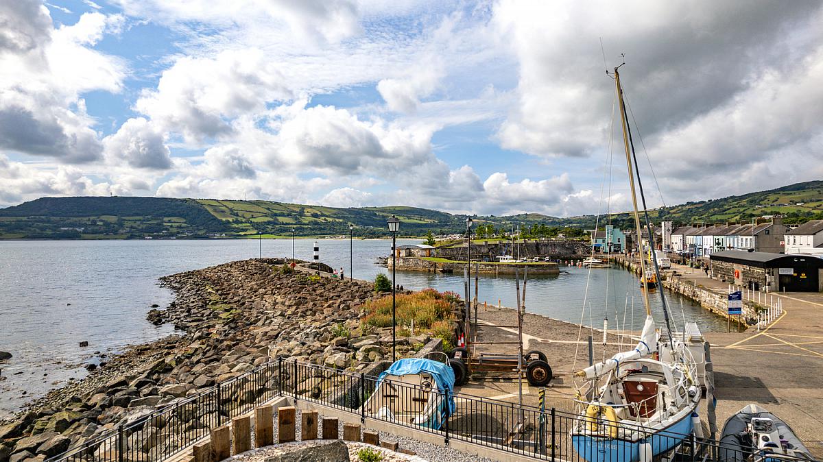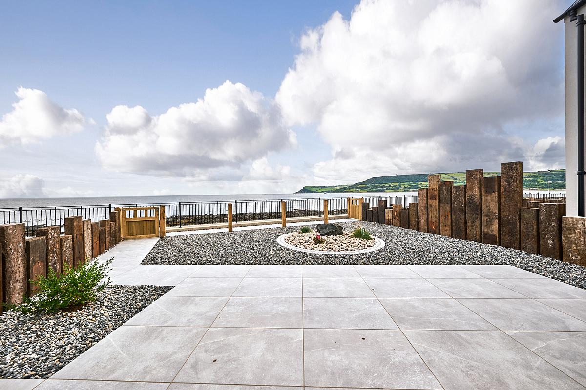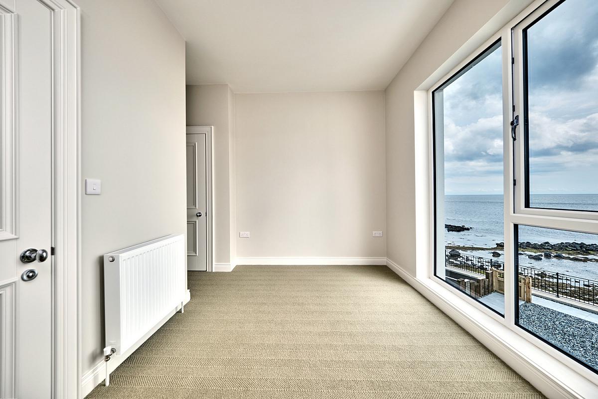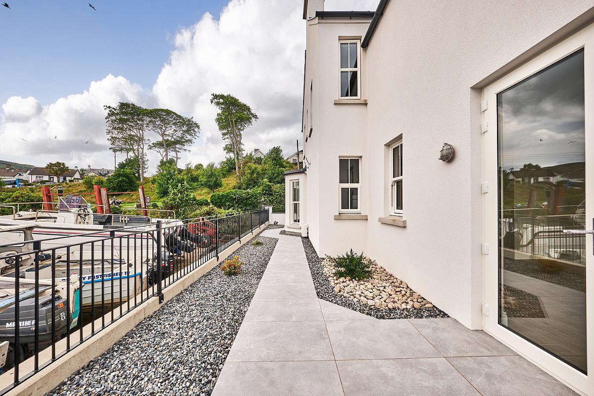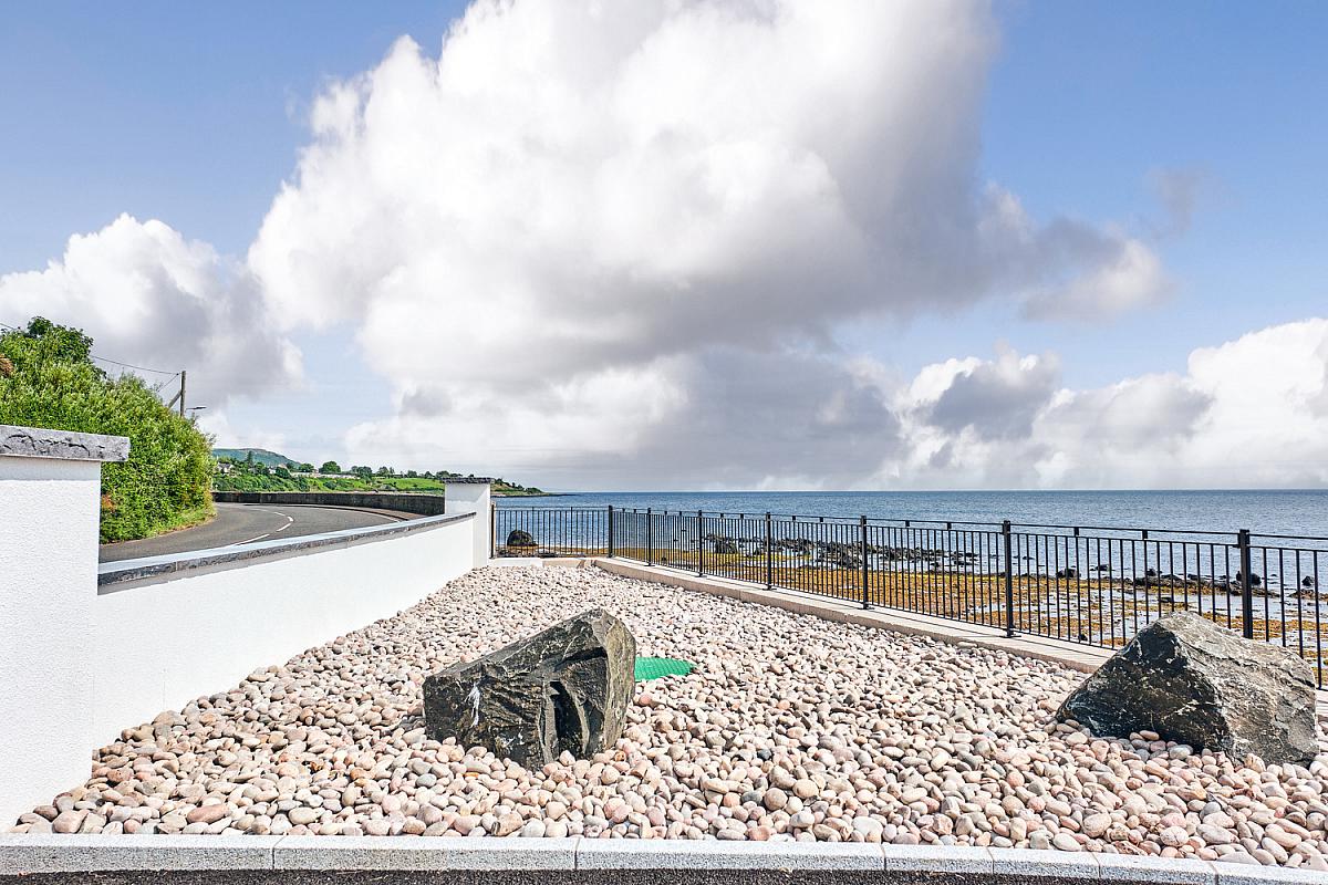 With bay window and pedestrian access to outside patio area both having stunning views of Carnlough harbour extending across the Irish sea towards Scotland. (Into bay)