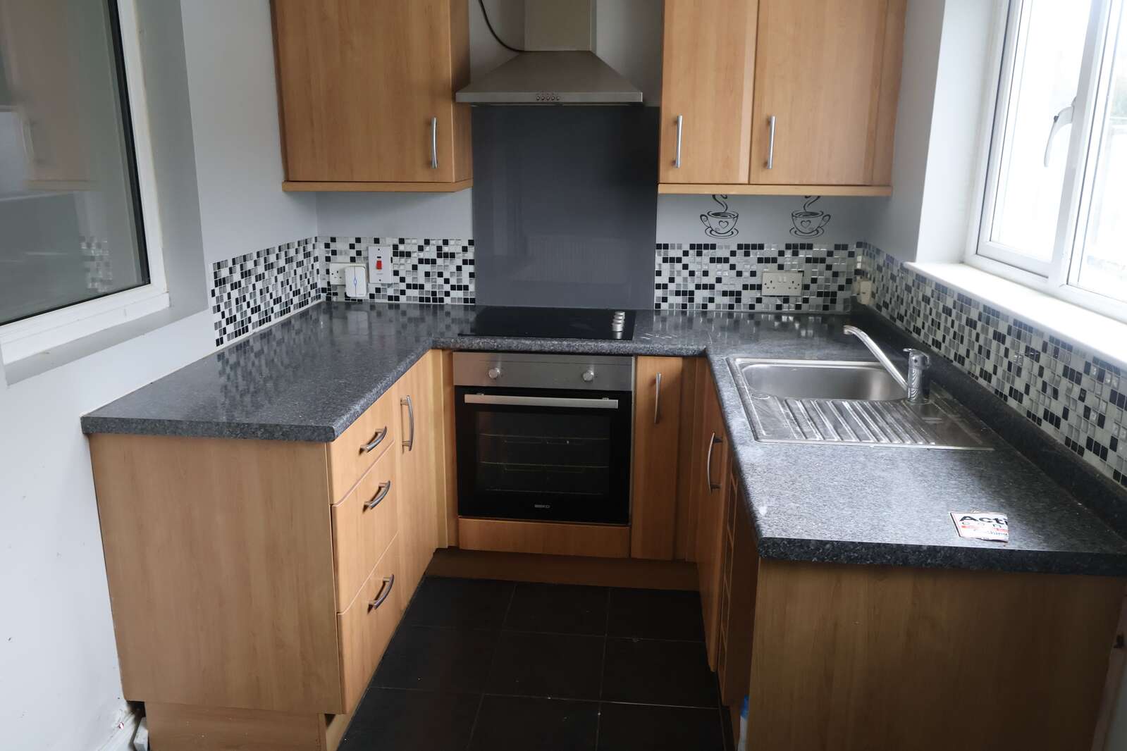 KITCHEN: 3.8m x 2.0m range of eye and low level fitted units, electric cooker, ceramic hob with s/s overhead extractor hood, s/s sink.