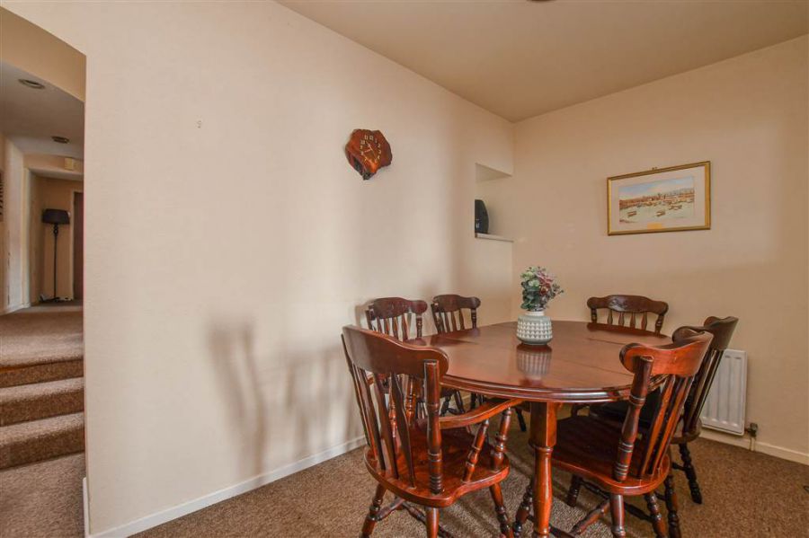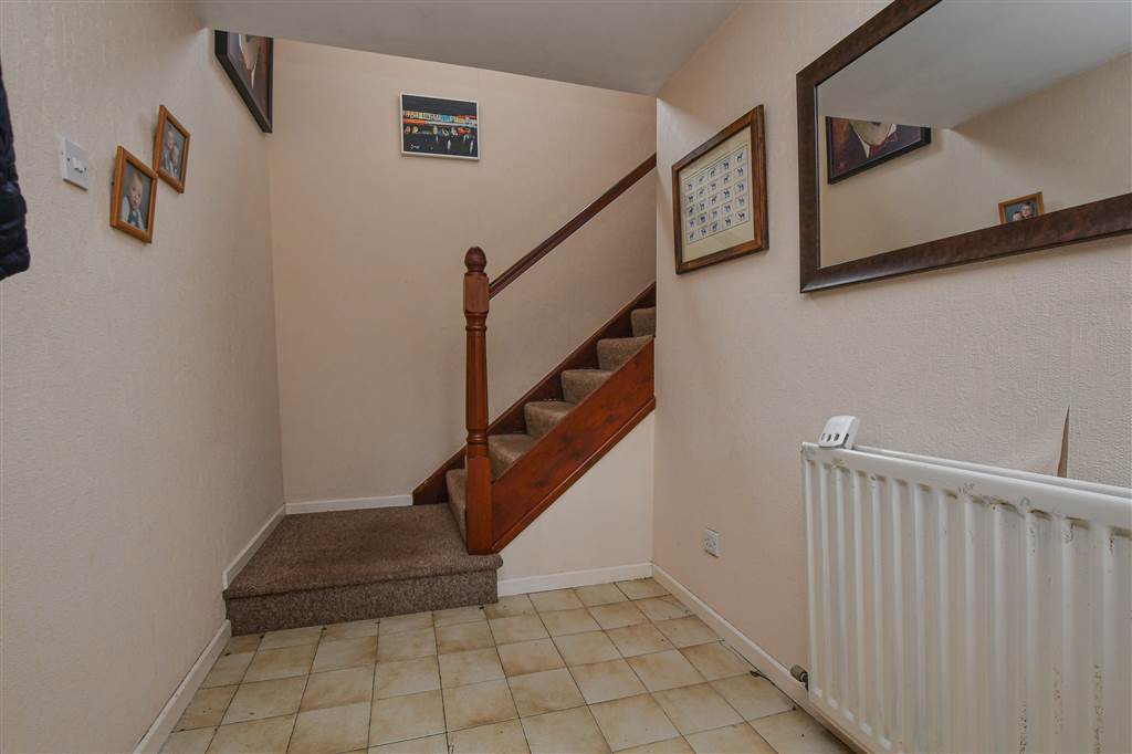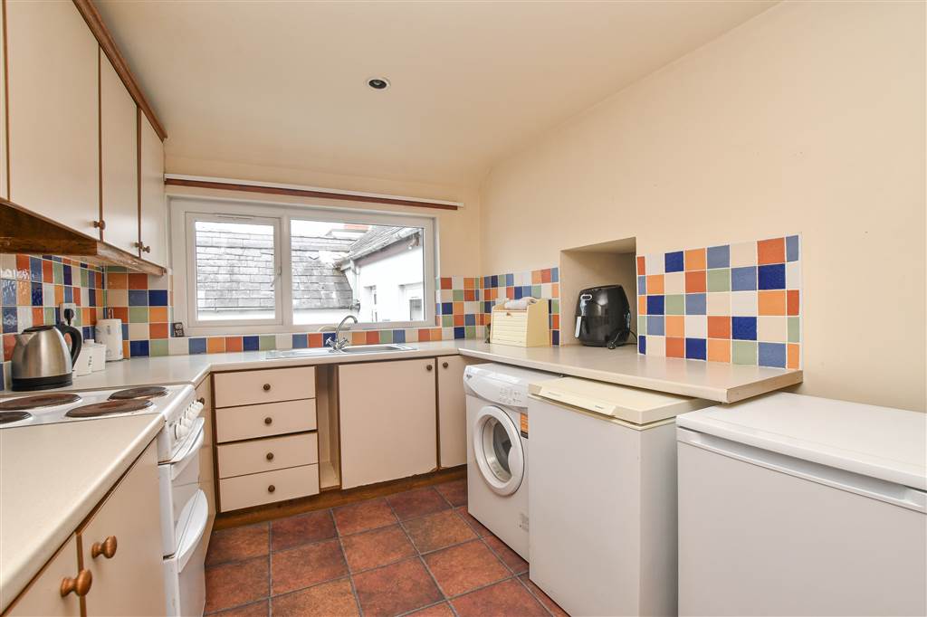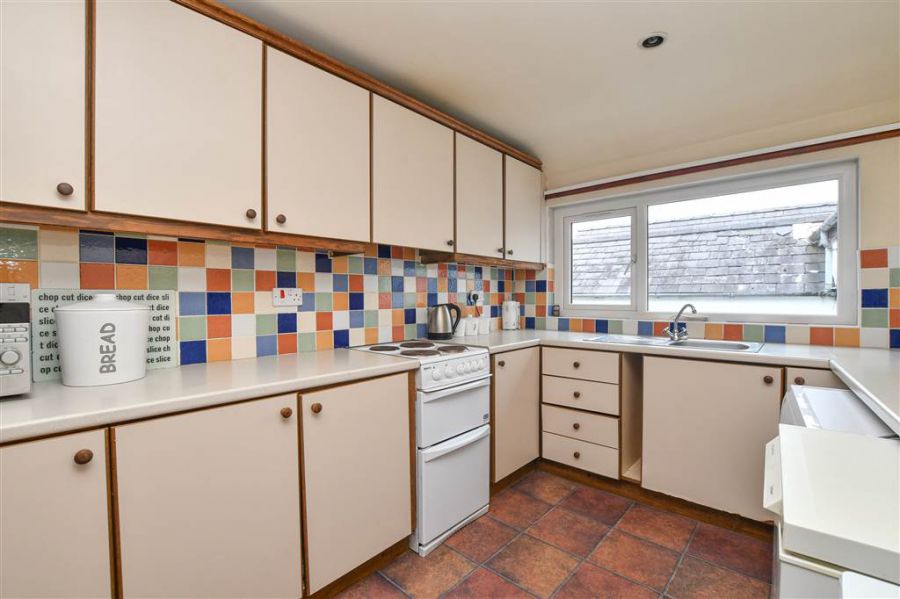Incorporating a range of fitted upper and lower level units. Integrated extractor fan and space for cooker. Part wall tiling.