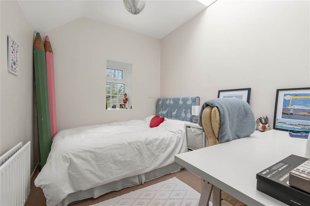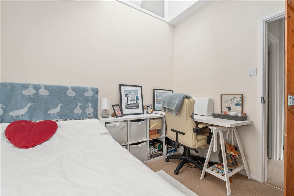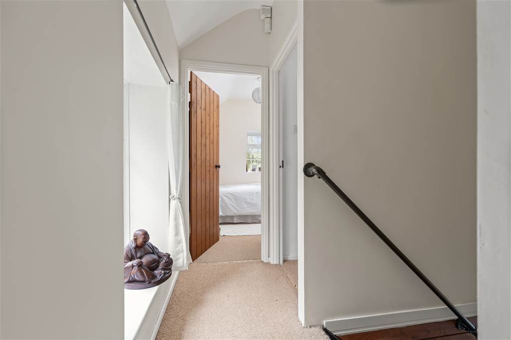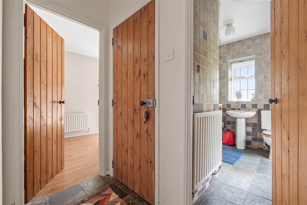 With access to partially floored loft. Linen cupboard with shelved storage.