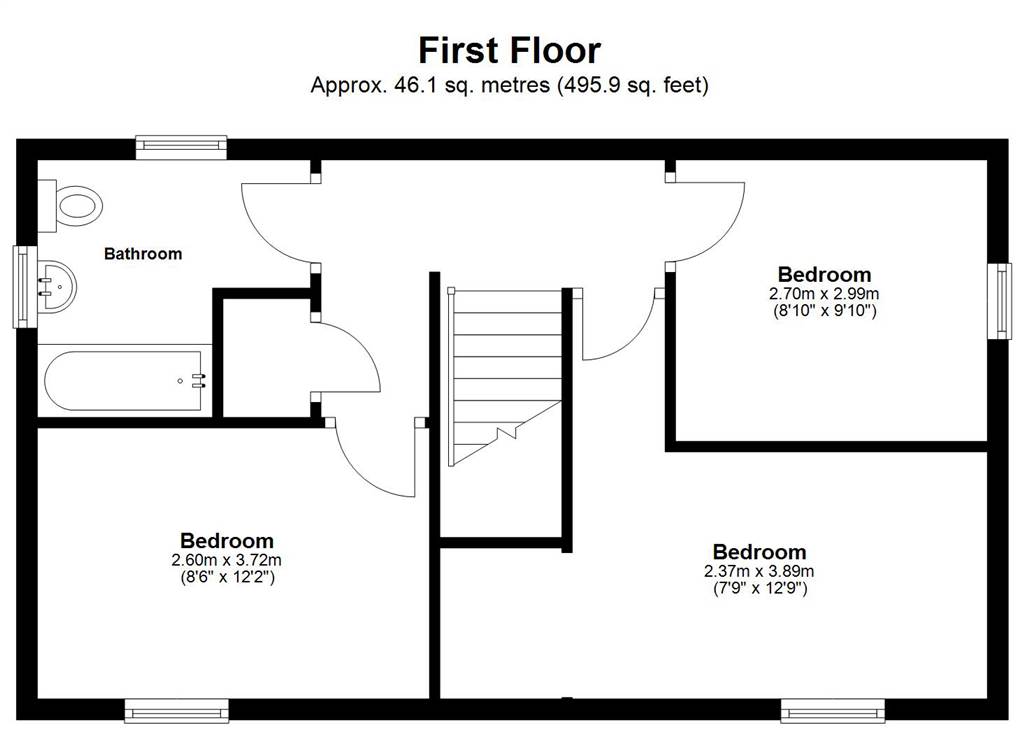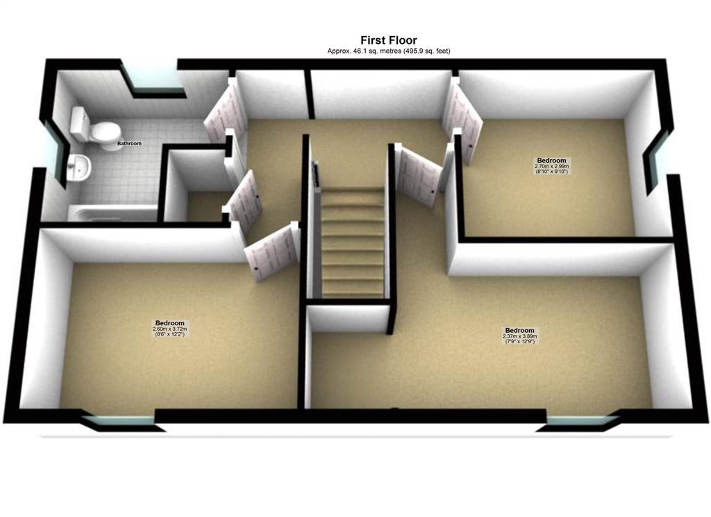 BEDROOM (3): 12' 2" X 8' 6" (3.72m X 2.60m)