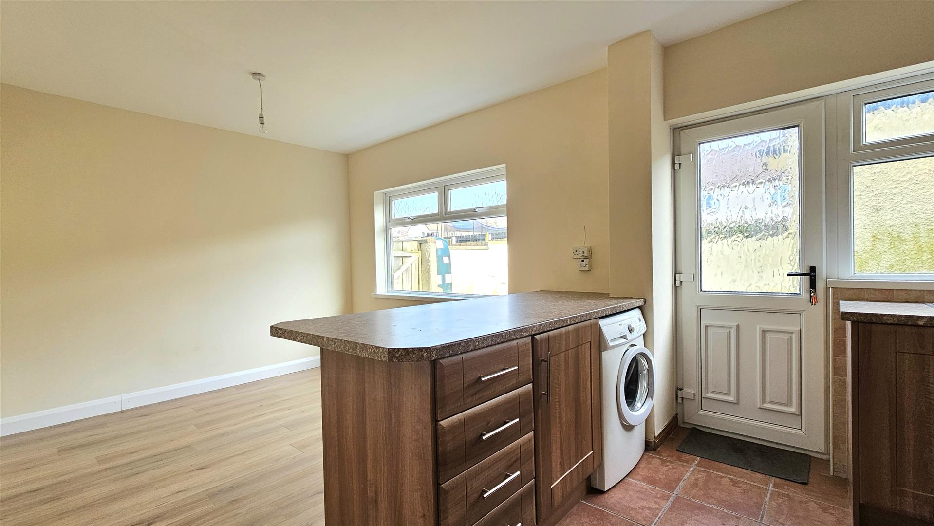 This end terrace house offers a well balanced layout and is conveniently located approximately one mile from Carrickfergus town centre, with transport links and local amenities close at hand, making it a suitable option for a first time buyer or as an investment property. The accommodation comprises three bedrooms, with built in wardrobes in bedrooms one and two, and a 12'9 x 12'6 lounge, while the kitchen opens into the dining area and is finished with walnut style high and low level units. Matching laminate wood flooring runs through the entrance hall, lounge and dining area, helping to tie the main living spaces together.