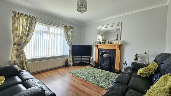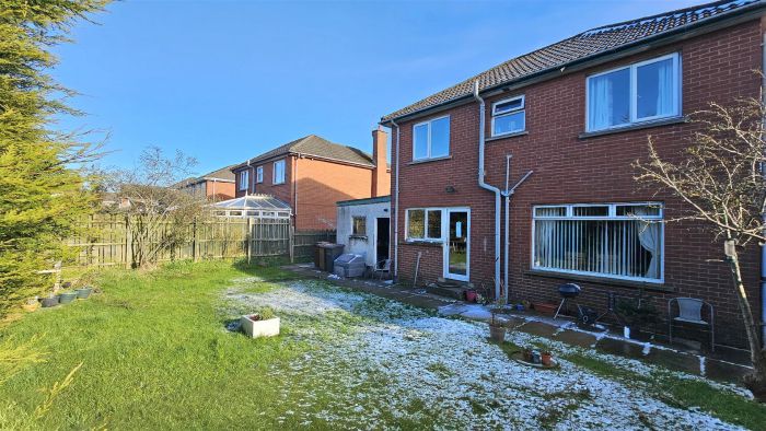 At the rear there is a garden laid to lawn whilst at the front a garden in lawn and a driveway providing off road parking