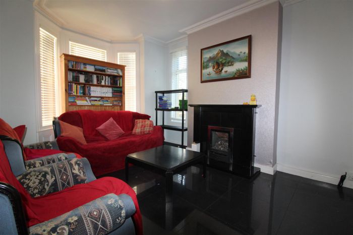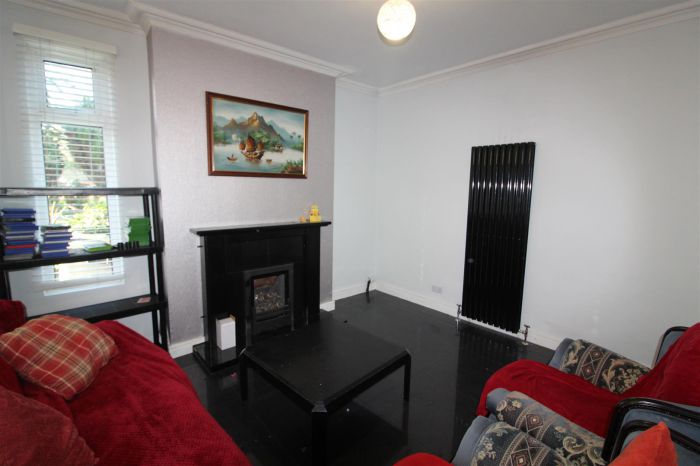 Double glazed bay window to front aspect, double glazed window to side aspect, fireplace with feature surround, radiator, tiled floor